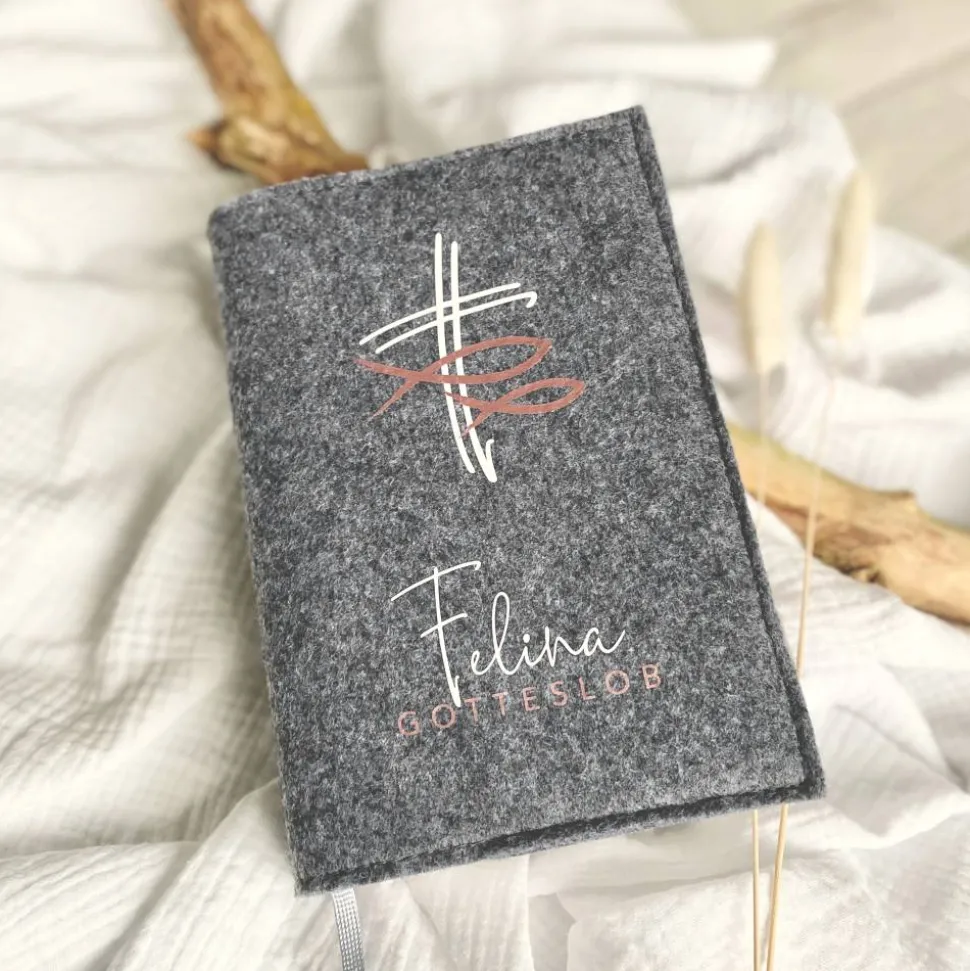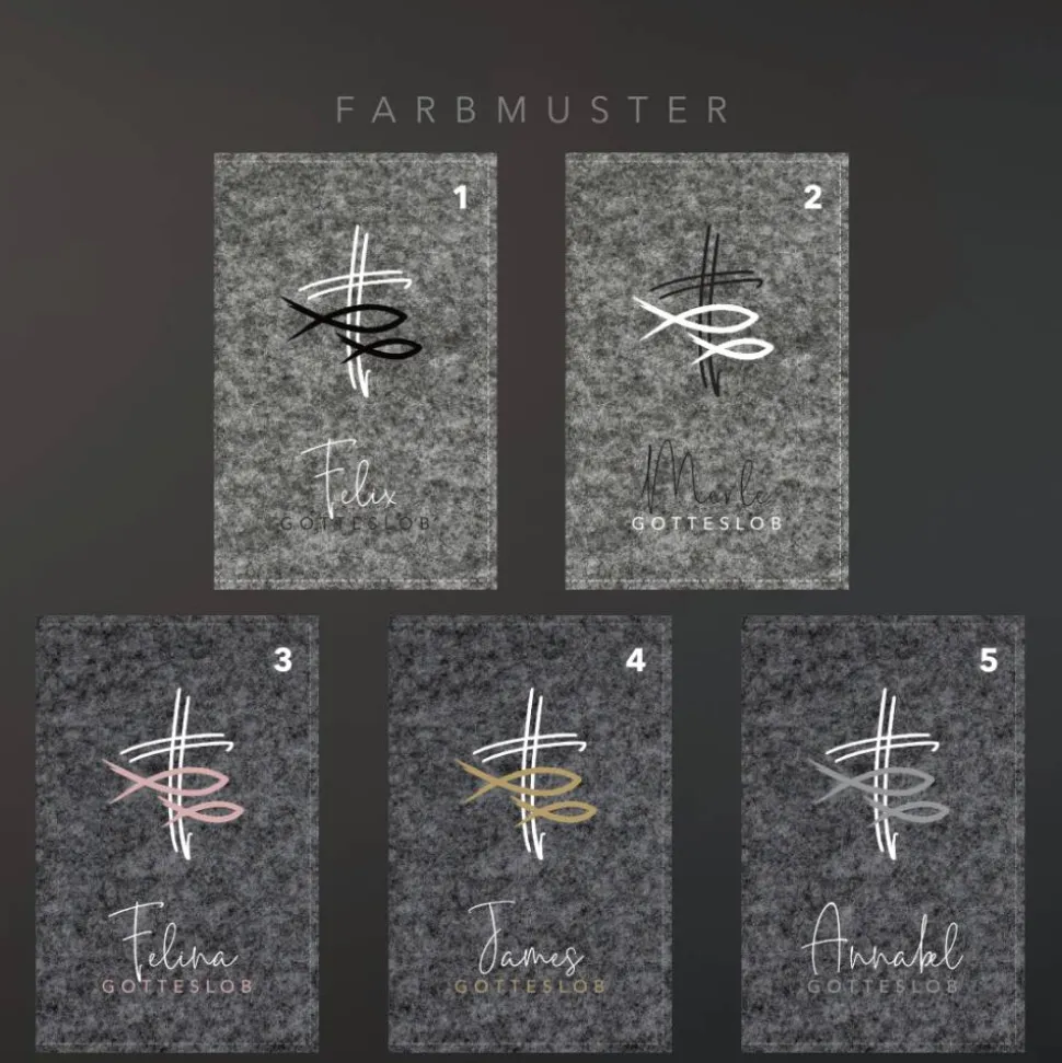 Gotteslob-Hülle aus Filz *Kreuz & Fische* | personalisiert mit Namen | mehrere Farben