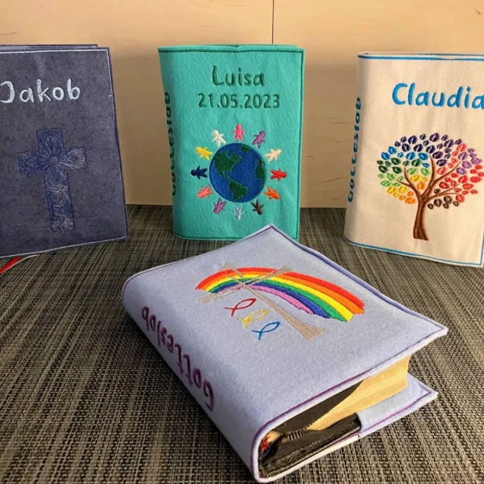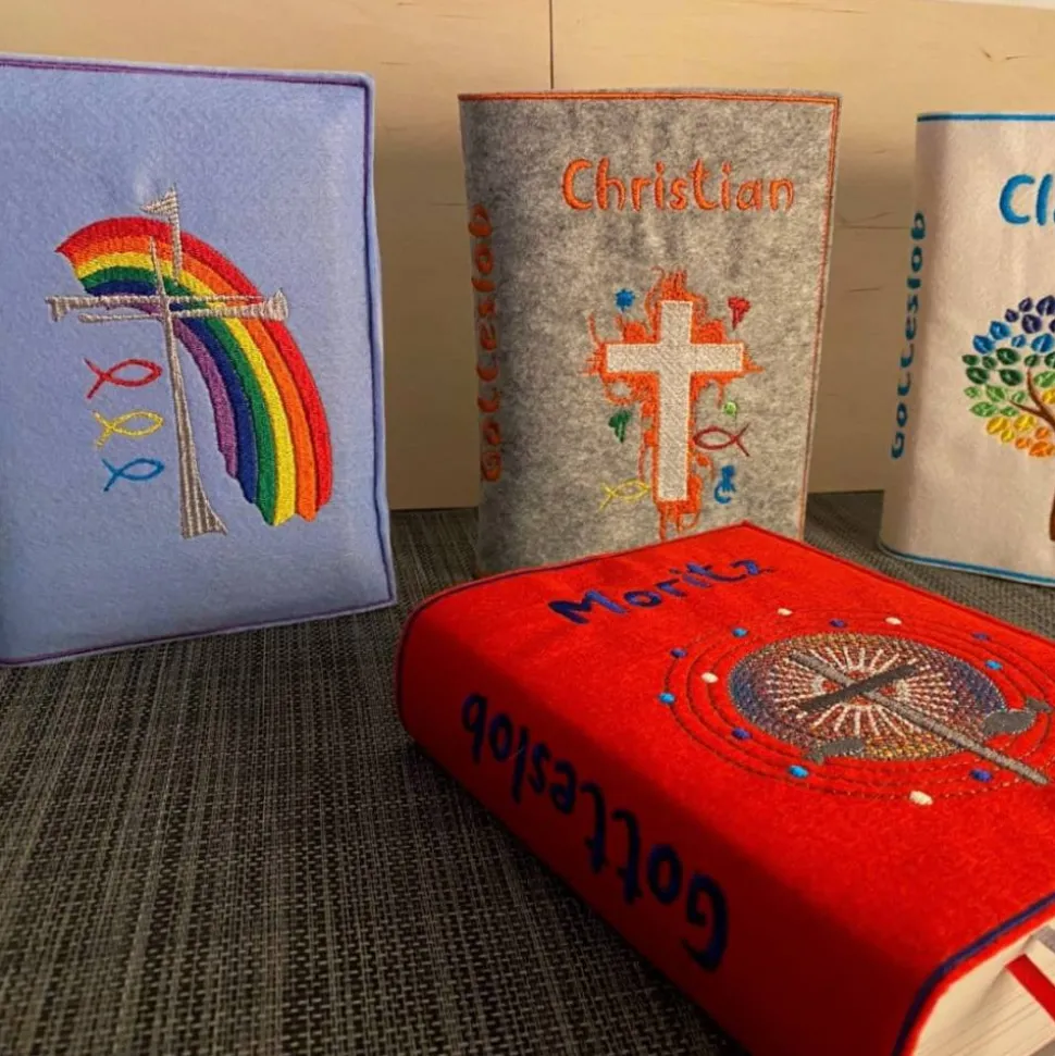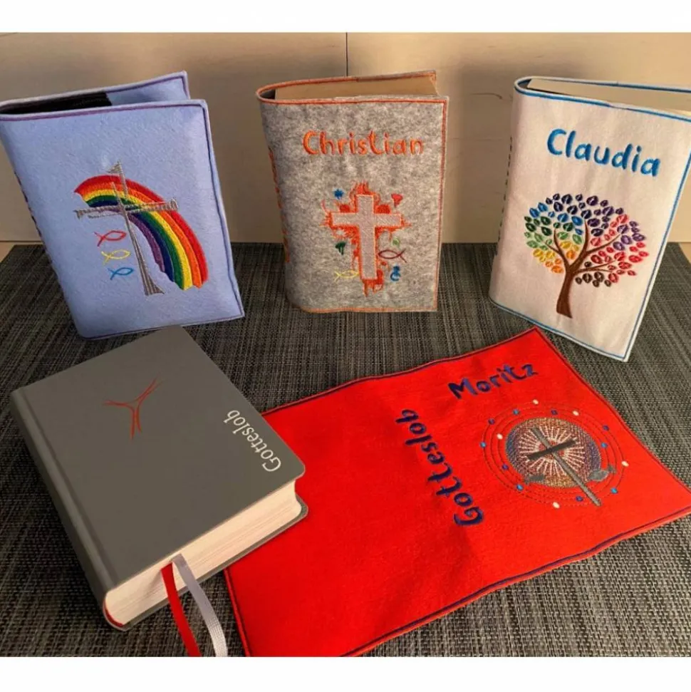 Alle Gotteslob-Umschläge werden aus 100% Filz mit einer Dicke von 3mm (1,5mm Vorderseite und 1,5mm Rückseite) und mit hochwertigem, deutschen Stickgarn von uns bestickt.