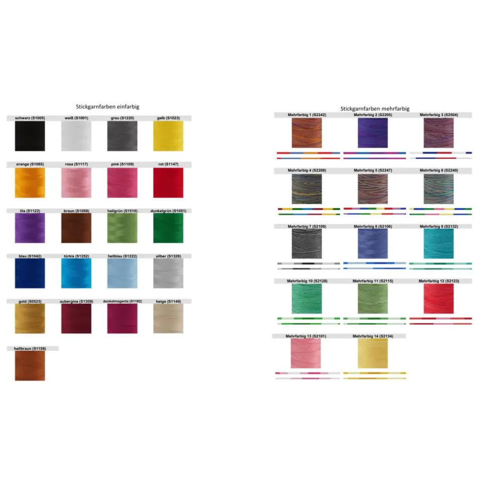 Zur Anfertigung des Produktes benötigen wir die Wunschauswahl eines Motives. Die Stickgarnfarben für die Motive sind von uns vorgegeben. Sollte es hier einen besonderen Wunsch geben, dann sprecht uns gerne an.