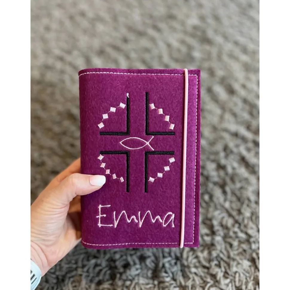Sie können Ihre Gotteslobhülle ganz individuell zusammenstellen. Wählen aus Filzfarbe, Wunschtext und Druckknopffarbe. So erhalten Sie ihren ganz persönliche Gotteslobhülle!
