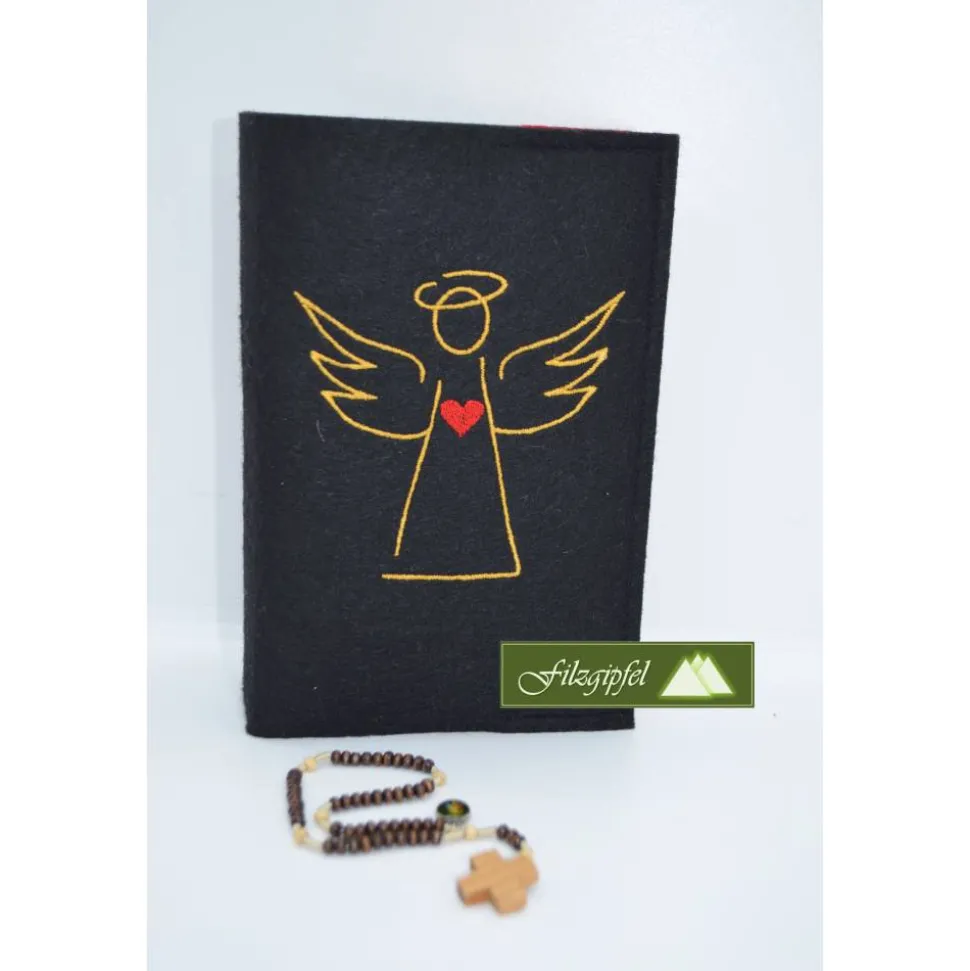 Ein Engel ist auf die Hülle aufgestickt.