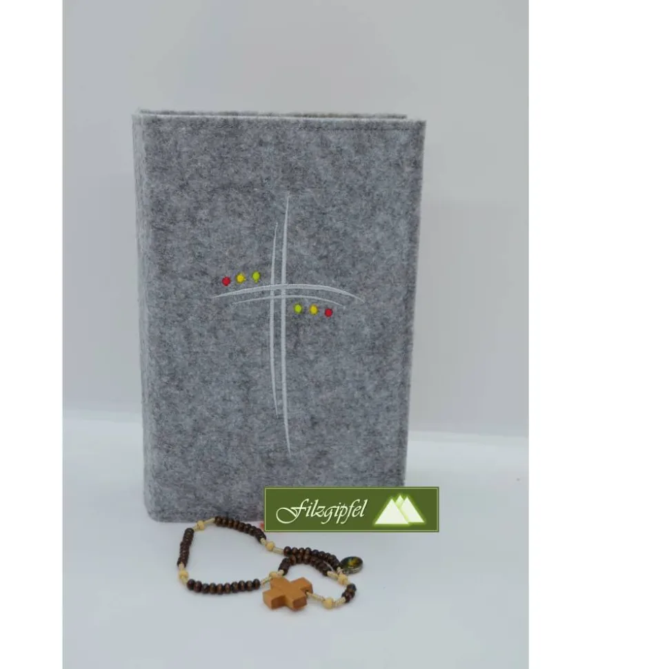 Ein filigranes Kreuz mit kleinen Punkten ist auf die Hülle aufgestickt.