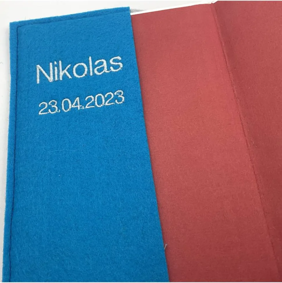 Auf Wunsch kann die Hülle mit dem Namen des Kindes bestickt werden –