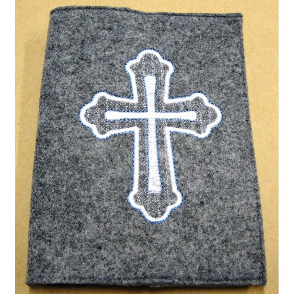 Liebevolle Handarbeit Gotteslobhülle, Einband – handgefertigt aus Filz 3 mm stark graumeliert mit weiss Kreuz-