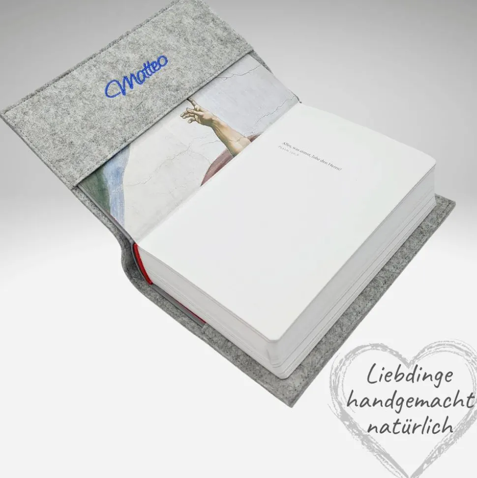 Edel und haltbar bestickt mit einem kleinen Boot auf dem cover und auf Wunsch mit Deinem Namen.