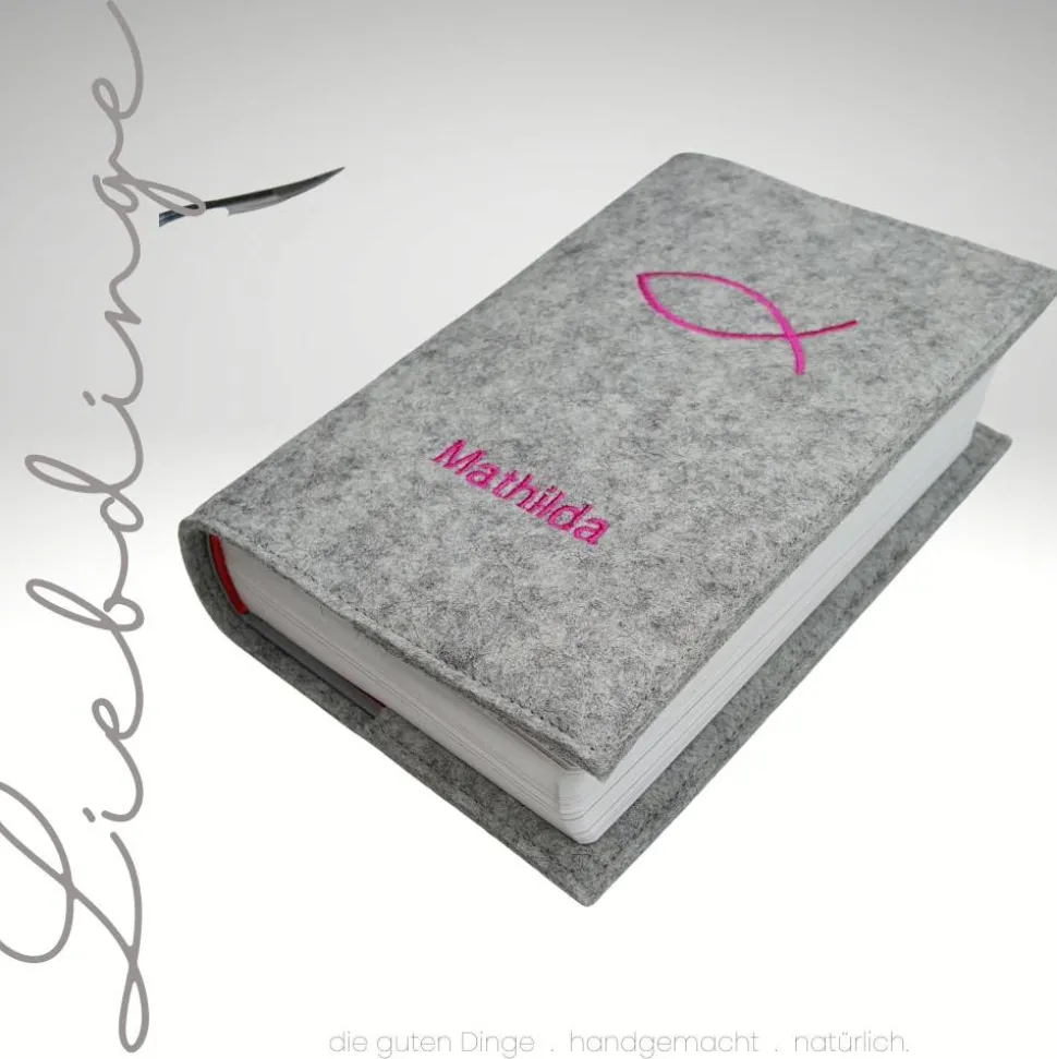 Edel und haltbar bestickt mit dem Ichtys Fisch und Deinem Wunschnamen.