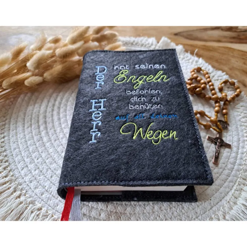 Die Filzhülle ist robust und langlebig und schützt das Gotteslob vor Schmutz und Beschädigungen. Dank des praktischen Designs ist das Gotteslob einfach einzulegen und herauszunehmen, und die Hülle kann auch während des Gottesdienstes verwendet werden.