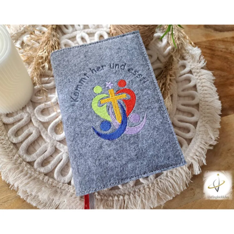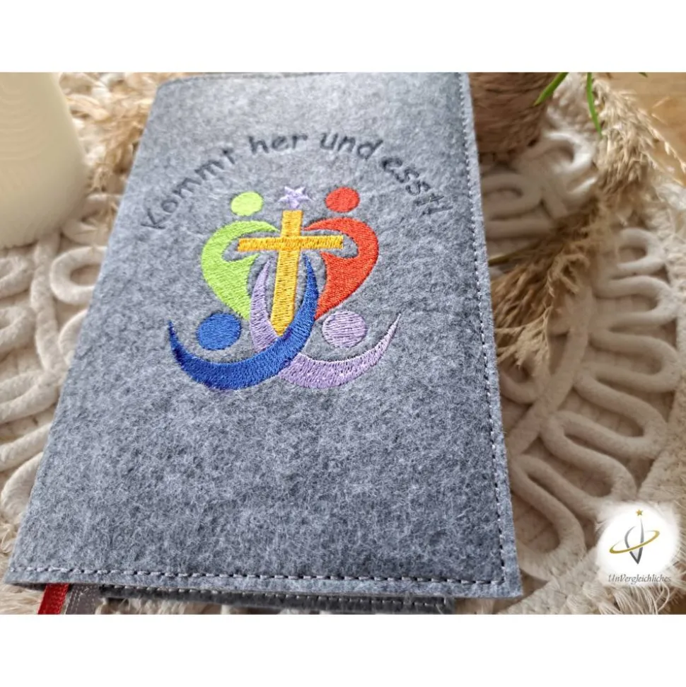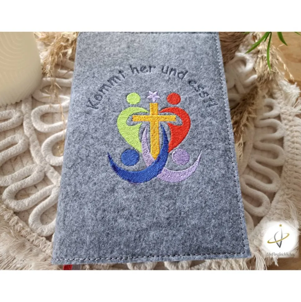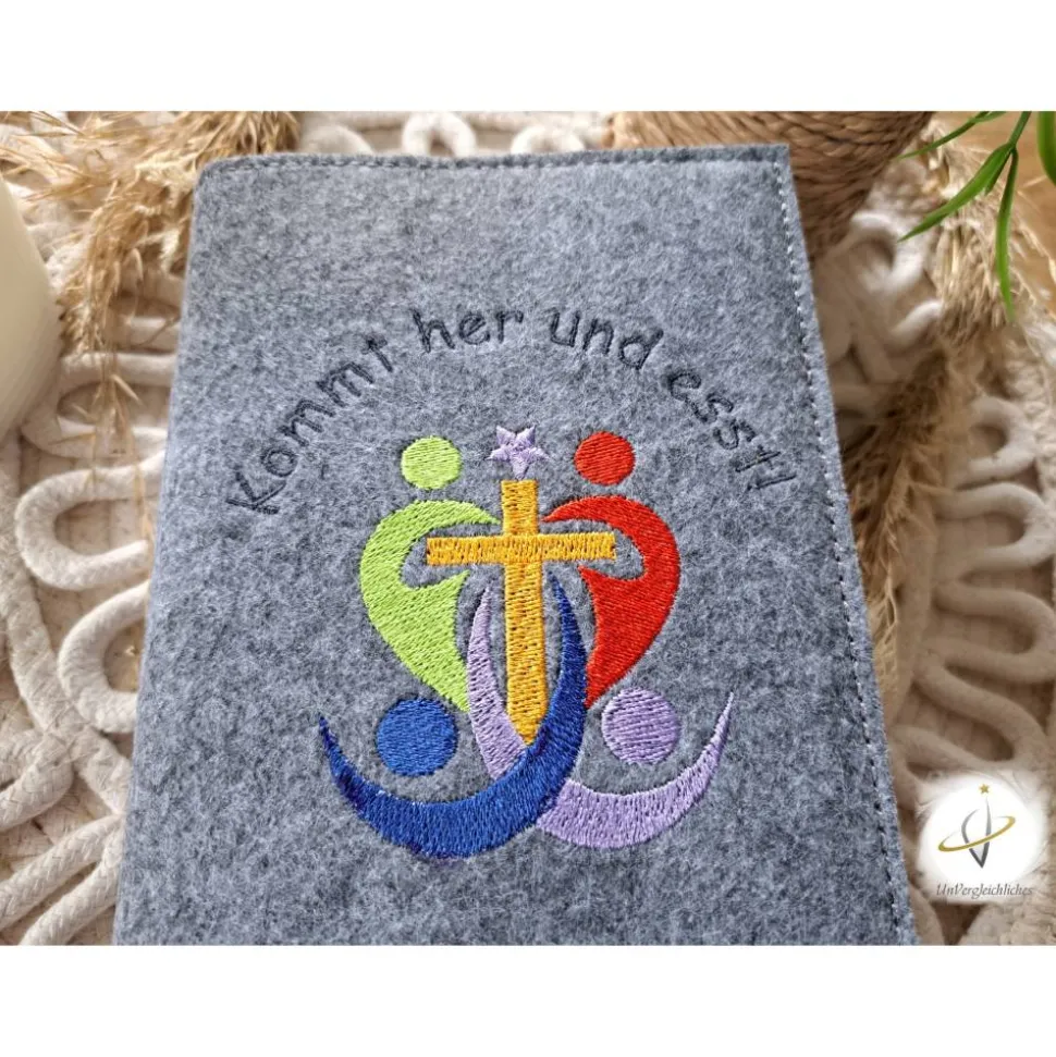 Die Hülle kann individuell mit dem Namen des Kindes und dem Datum der Erstkommunion gestaltet werden, was sie zu einem ganz besonderen Andenken an diesen wichtigen Tag macht. Die Bestickung erfolgt auf der Vorderseite der Hülle und wird mit modernster Technologie präzise und dauerhaft in den Filz eingestickt.