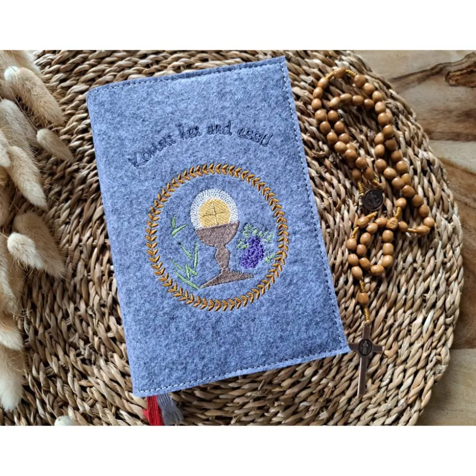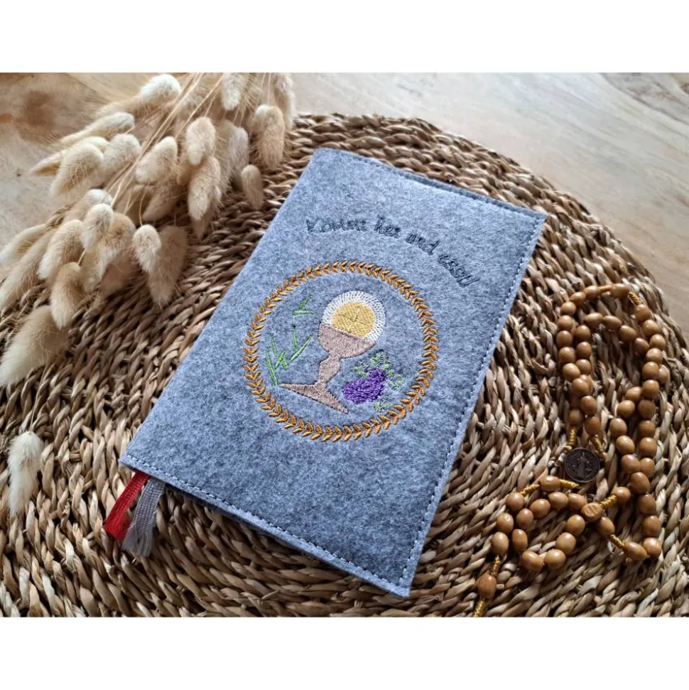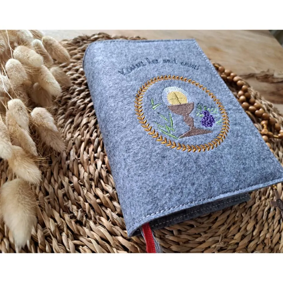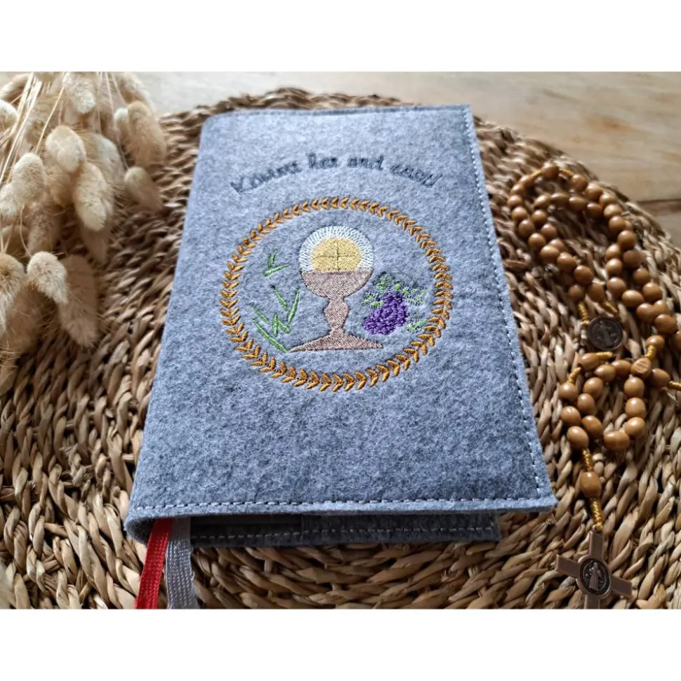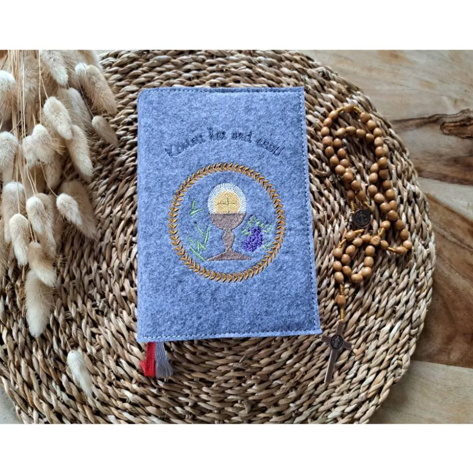Gotteslobhülle Filz Kommunion 2025 kommt her und esst! personalisierbarer Einband Erstkommunion