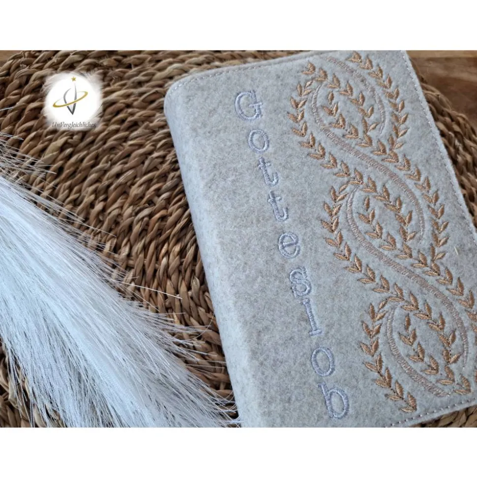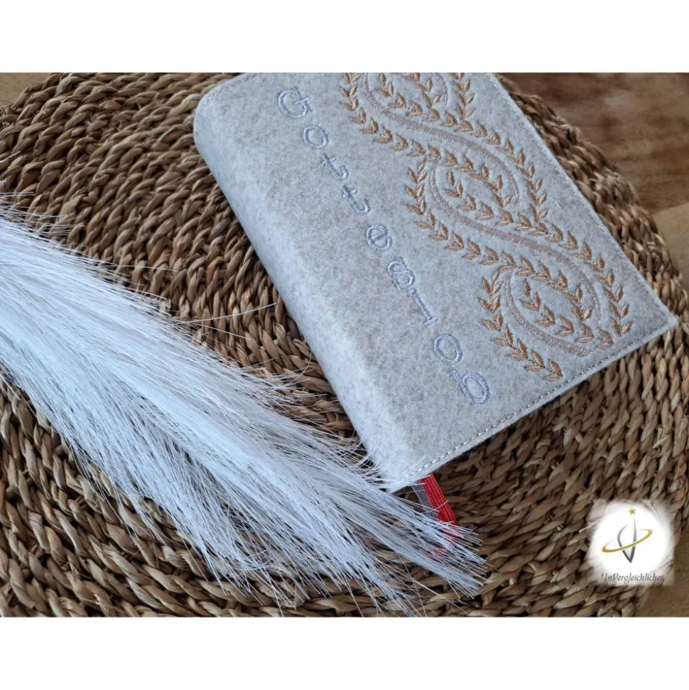 Die Filzhülle ist robust und langlebig und schützt das Gotteslob vor Schmutz und Beschädigungen. Dank des praktischen Designs ist das Gotteslob einfach einzulegen und herauszunehmen, und die Hülle kann auch während des Gottesdienstes verwendet werden.
