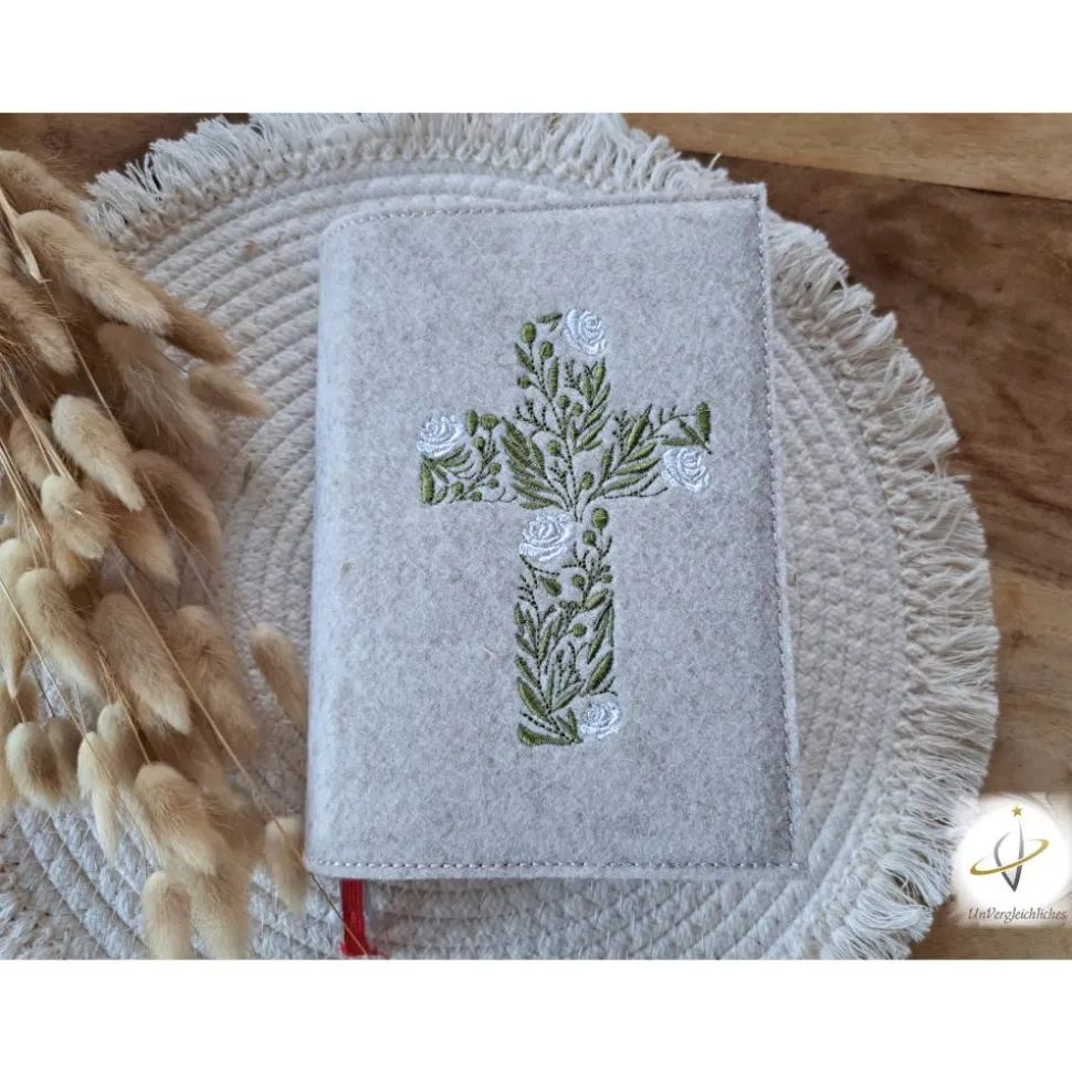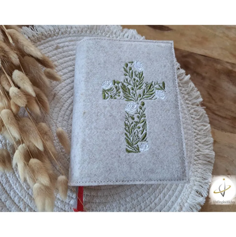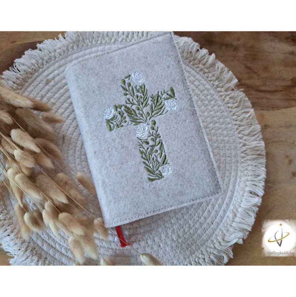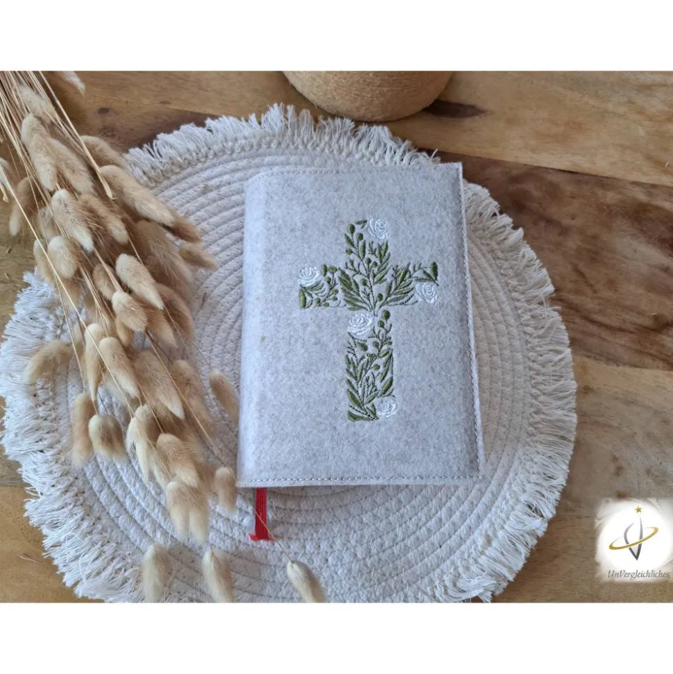Die Hülle kann individuell mit dem Namen des Kindes und dem Datum der Erstkommunion gestaltet werden, was sie zu einem ganz besonderen Andenken an diesen wichtigen Tag macht. Die Bestickung erfolgt auf der Vorderseite der Hülle und wird mit modernster Technologie präzise und dauerhaft in den Filz eingearbeitet.