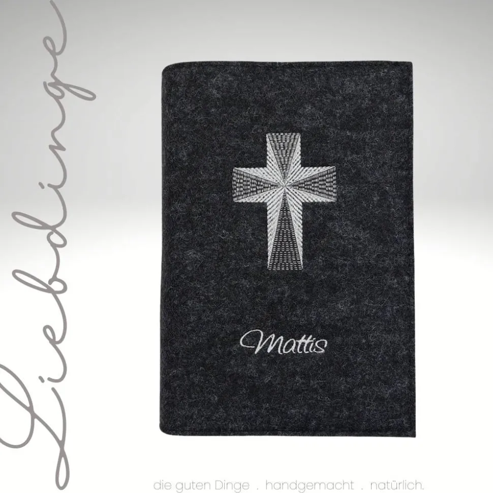Edel und haltbar bestickt mit einem Reliefkreuz und Name in Schreibschrift