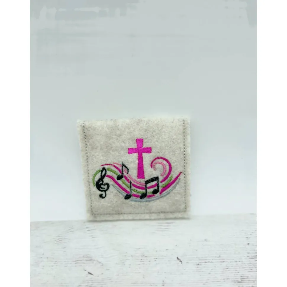 Design „Musik Kreuz“ Gotteslobhülle aus hochwertigen 3 mm starken Filz (100 % Polyester, türkiser Filz 90 % Schurwolle, 10 % Polyester, beige in 2 mm)