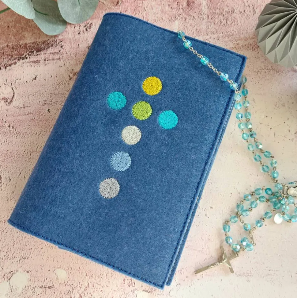 Hier aus schönem blauen Wollfilz bestickt mit einem Kreuz. Gerne sticke ich gegen Aufpreis zusätzlich noch den Namen und/oder das Datum auf. Bitte beachte, dass dadurch das Motiv kleiner wird. Falls du die Hülle lieber in einer anderen Farben (siehe meine anderen Gotteslobhüllen) oder das Kreuz in anderen Farben haben möchtest, vermerke das bitte in den Bemerkungen. Gerne schicke ich dir nach Kaufabschluss ein Foto der neuen Farbzusammenstellung zu.