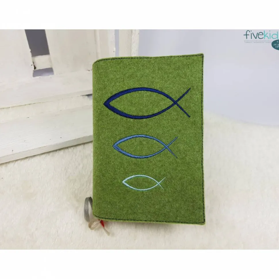 Dieser Einband ist aus hochwertigem Wollfilz gefertigt. Es ist bestickt mit diesem wunderschönen kirchlichen Motiv. Die Farben der Bestickung können Sie auch gerne frei wählen. Hierzu bitte einfach eine Nachricht oder einen Kommentar zum Kauf dazuschreiben. Ansonsten wird es wie in der Abbildung gefertigt. Das verwendete Filz ist hier in einem melierten grün. Bestickt in Blautönen.