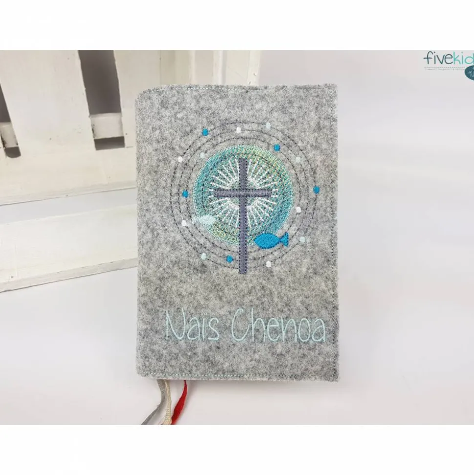 Dieser Einband ist aus hochwertigem Wollfilz gefertigt. Es ist bestickt mit diesem wunderschönen kirchlichen Motiv. Die Farben der Bestickung können Sie auch gerne frei wählen. Hierzu bitte einfach eine Nachricht oder einen Kommentar zum Kauf dazuschreiben. Ansonsten wird es wie in der Abbildung gefertigt. Das verwendete Filz ist hier in einem melierten grau. Bestickt in Mint- Türkis- und Silbertönen.