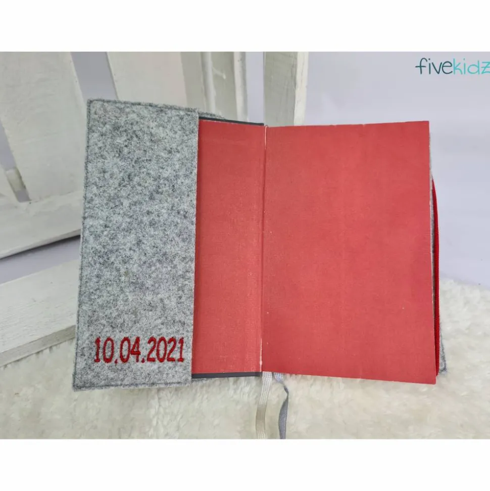 Dieser Einband ist aus hochwertigem Wollfilz gefertigt. Es ist bestickt mit diesem wunderschönen kirchlichen Motiv. Die Farben der Bestickung können Sie auch gerne frei wählen. Hierzu bitte einfach eine Nachricht oder einen Kommentar zum Kauf dazuschreiben. Ansonsten wird es wie in der Abbildung gefertigt. Das verwendete Filz ist hier in einem melierten hellgrau. Bestickt in Lila- Grün- und Silbertönen.