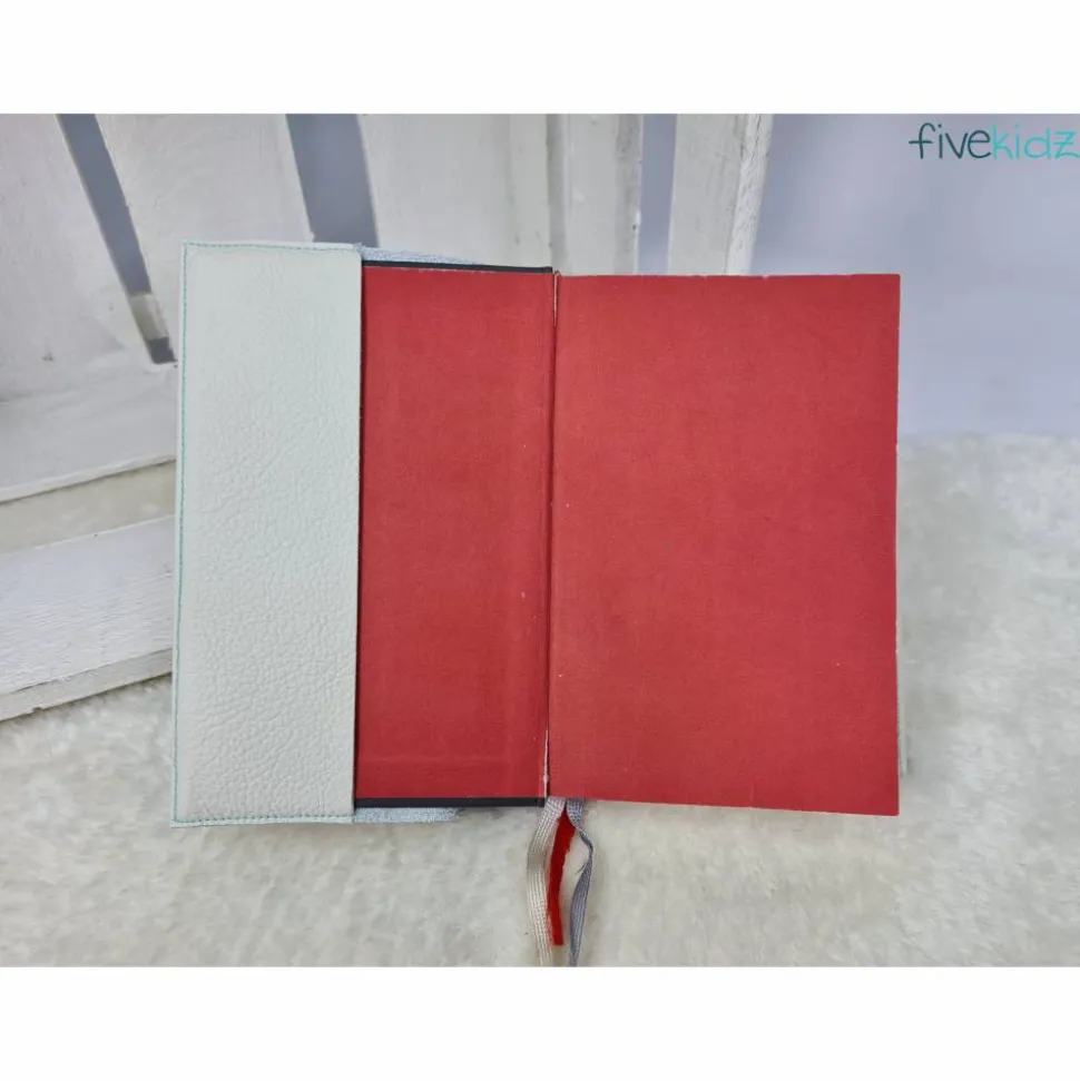 Dieser Einband ist aus hochwertigem Echtleder gefertigt. Es ist bestickt mit diesem wunderschönen kirchlichen Motiv. Die Farben der Bestickung können Sie auch gerne frei wählen. Hierzu bitte einfach eine Nachricht oder einen Kommentar zum Kauf dazuschreiben. Ansonsten wird es wie in der Abbildung gefertigt. Das verwendete Leder ist hier in einem altweiß. Bestickt in Türkis- und Silbertönen.