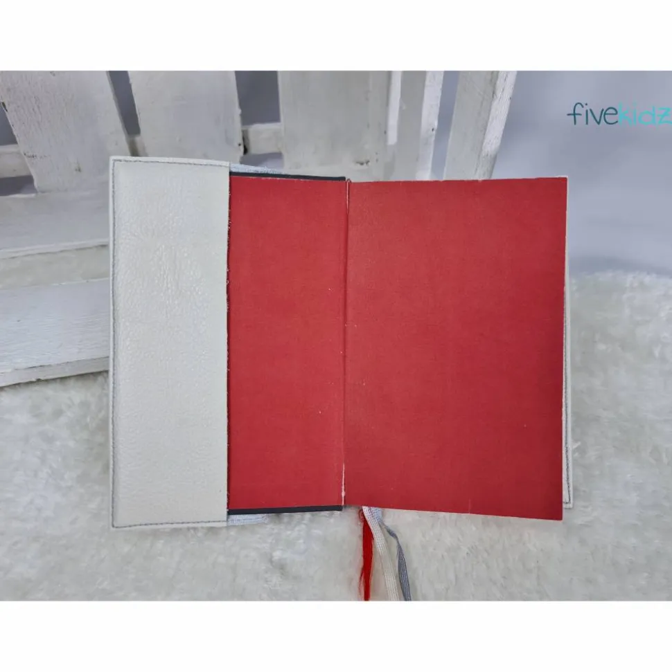 Dieser Einband ist aus hochwertigem Echtleder gefertigt. Es ist bestickt mit diesem wunderschönen kirchlichen Motiv. Die Farben der Bestickung können Sie auch gerne frei wählen. Hierzu bitte einfach eine Nachricht oder einen Kommentar zum Kauf dazuschreiben. Ansonsten wird es wie in der Abbildung gefertigt. Das verwendete Leder ist hier in einem altweiß. Bestickt in Rot- und Silbertönen.