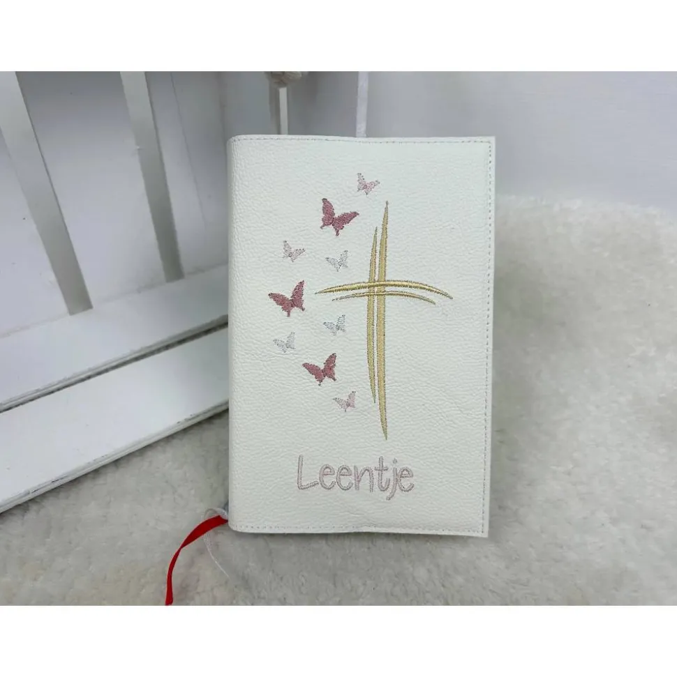 Dieser Einband ist aus echtem Rindsleder gefertigt. Es ist bestickt mit diesem wunderschönen kirchlichen Motiv. Die Farben der Bestickung können Sie auch gerne frei wählen. Hierzu bitte einfach eine Nachricht oder einen Kommentar zum Kauf dazuschreiben. Ansonsten wird es wie in der Abbildung gefertigt. Das verwendete Leder ist hier in einem altweiß. Bestickt in Altrosa, Rosa, Creme und Gold.