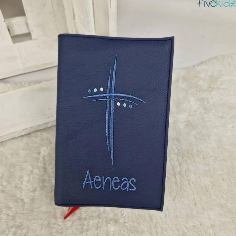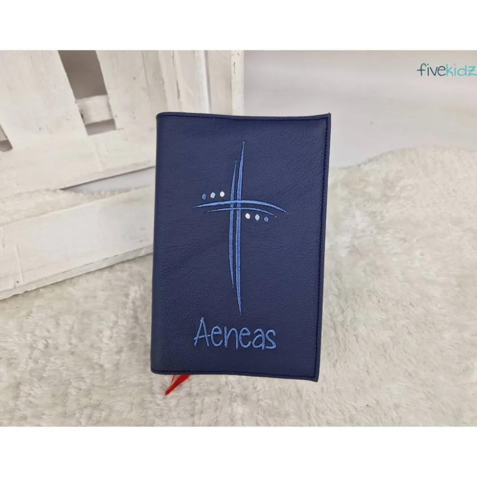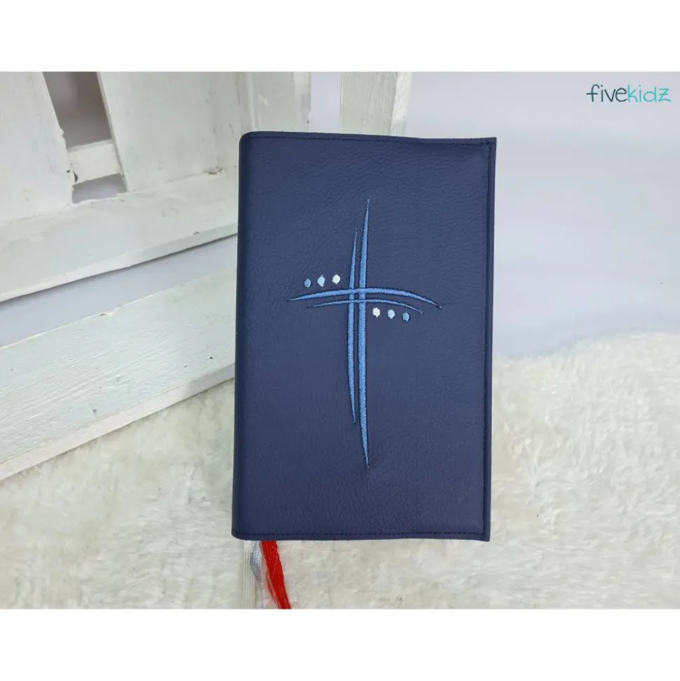 Dieser Einband ist aus hochwertigem Echtleder gefertigt. Es ist bestickt mit diesem wunderschönen kirchlichen Motiv. Die Farben der Bestickung können Sie auch gerne frei wählen. Hierzu bitte einfach eine Nachricht oder einen Kommentar zum Kauf dazuschreiben. Ansonsten wird es wie in der Abbildung gefertigt. Das verwendete Leder ist hier in einem dunklen blau. Bestickt in Blautönen.