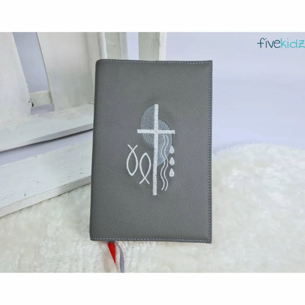 Dieser Einband ist aus hochwertigem Echtleder gefertigt. Es ist bestickt mit diesem wunderschönen kirchlichen Motiv. Die Farben der Bestickung können Sie auch gerne frei wählen. Hierzu bitte einfach eine Nachricht oder einen Kommentar zum Kauf dazuschreiben. Ansonsten wird es wie in der Abbildung gefertigt. Das verwendete Leder ist hier in einem dunklen grau. Bestickt in Lila, Weiß- und Silbertönen.