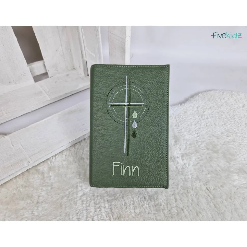 Dieser Einband ist aus hochwertigem Echtleder gefertigt. Es ist bestickt mit diesem wunderschönen kirchlichen Motiv. Die Farben der Bestickung können Sie auch gerne frei wählen. Hierzu bitte einfach eine Nachricht oder einen Kommentar zum Kauf dazuschreiben. Ansonsten wird es wie in der Abbildung gefertigt. Das verwendete Leder ist hier in einem Grünton. Bestickt in Grün- und Silbertönen.