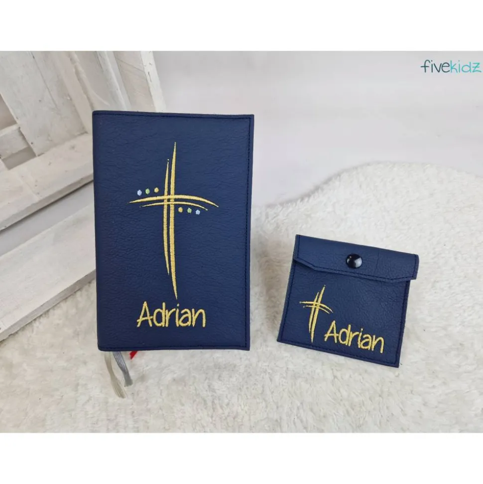 Dieser Einband ist aus hochwertigem Echtleder gefertigt. Es ist bestickt mit diesem wunderschönen kirchlichen Motiv. Die Farben der Bestickung können Sie auch gerne frei wählen. Hierzu bitte einfach eine Nachricht oder einen Kommentar zum Kauf dazuschreiben. Ansonsten wird es wie in der Abbildung gefertigt. Das verwendete Leder ist hier in einem dunklen blau. Bestickt in Gold.