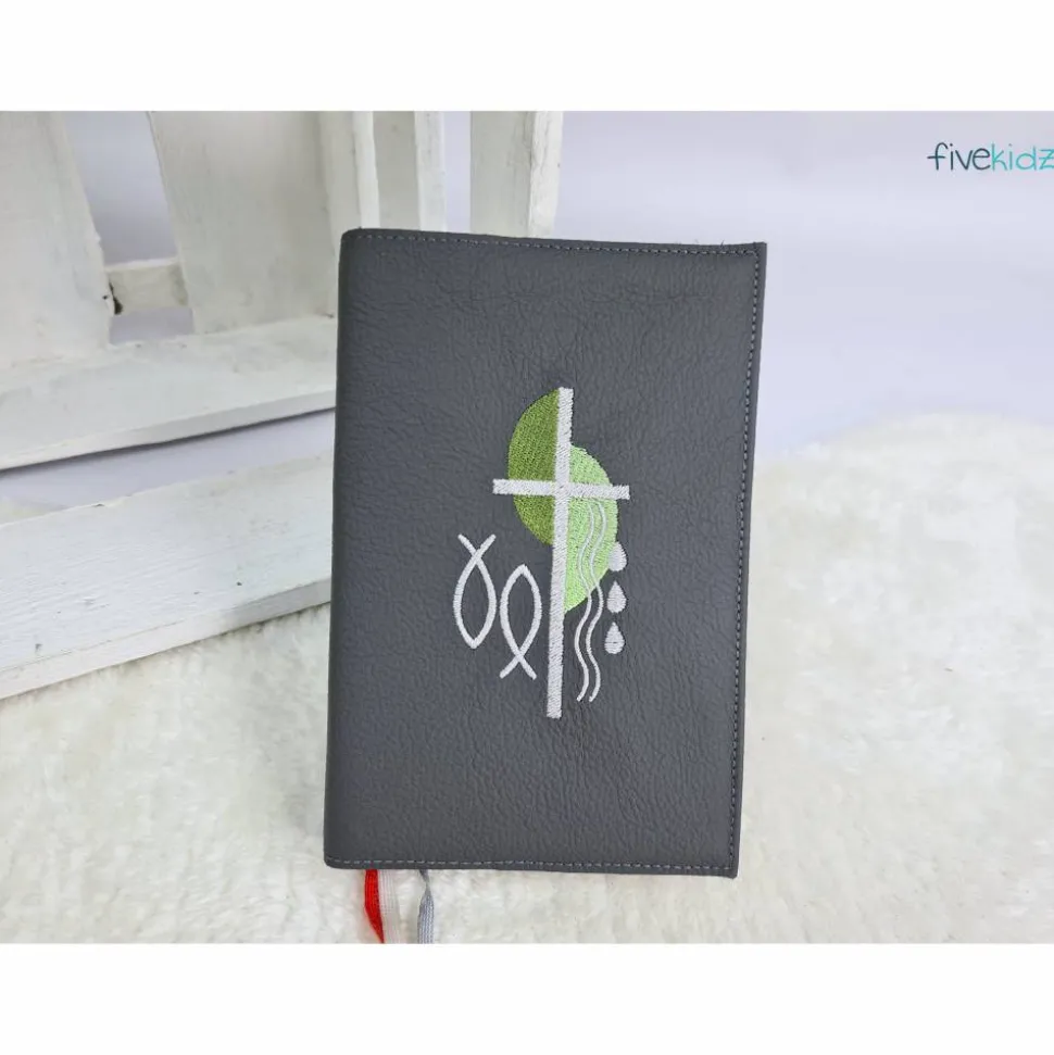 Dieser Einband ist aus hochwertigem Echtleder gefertigt. Es ist bestickt mit diesem wunderschönen kirchlichen Motiv. Die Farben der Bestickung können Sie auch gerne frei wählen. Hierzu bitte einfach eine Nachricht oder einen Kommentar zum Kauf dazuschreiben. Ansonsten wird es wie in der Abbildung gefertigt. Das verwendete Leder ist hier in einem dunklen grau. Bestickt in Grün- und Silbertönen.