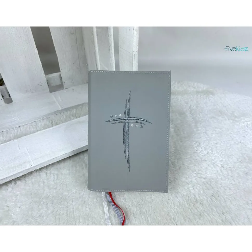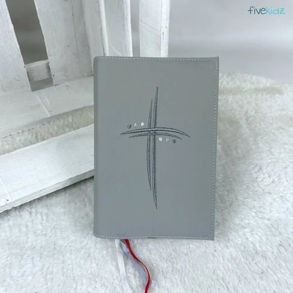Dieser Einband ist aus echtem Rindsleder gefertigt. Es ist bestickt mit diesem wunderschönen kirchlichen Motiv. Die Farben der Bestickung können Sie auch gerne frei wählen. Hierzu bitte einfach eine Nachricht oder einen Kommentar zum Kauf dazuschreiben. Ansonsten wird es wie in der Abbildung gefertigt. Das verwendete Leder ist hier in einem silbergrau. Bestickt in Grautönen.
