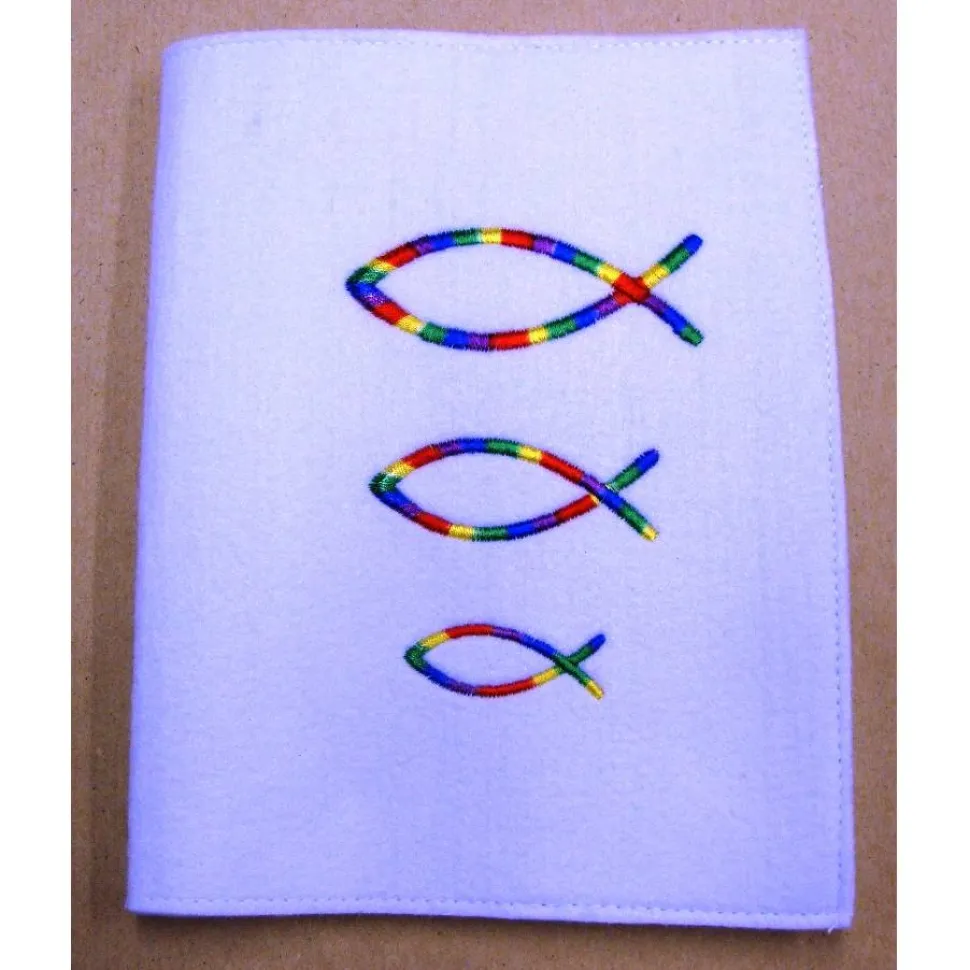 Entdecke die handgefertigte Gotteslobhülle aus Filz in Weiß mit liebevoll gestickten Regenbogenfischen! Perfekt als Geschenk zur Kommunion, Firmung oder für dich selbst. Die hochwertige Filzhülle schützt dein Gotteslob vor Verschmutzungen und verleiht ihm einen edlen Look.