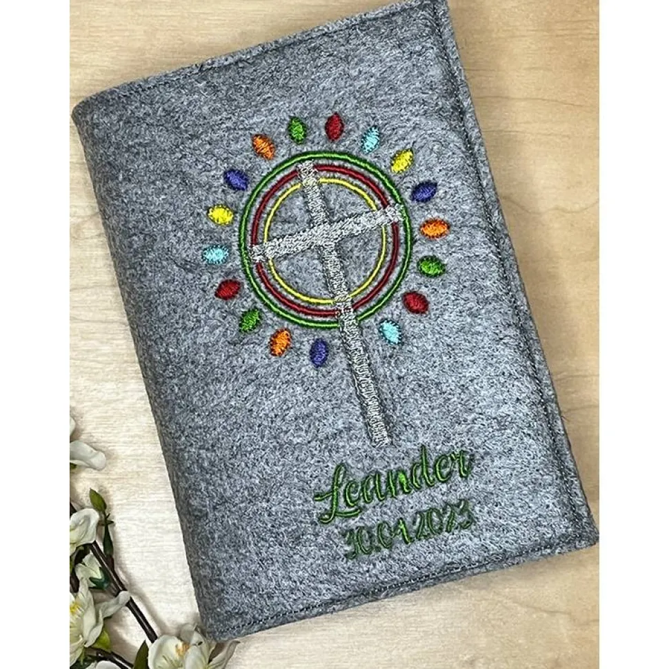 Auf Wunsch kann gerne der Name und auch das Datum mit eingestickt werden, einfach unter Optionen auswählen. Es stehen verschiedene Filzfarben zur Auswahl, bitte die Farbe bei der Personalisierung mitangeben.