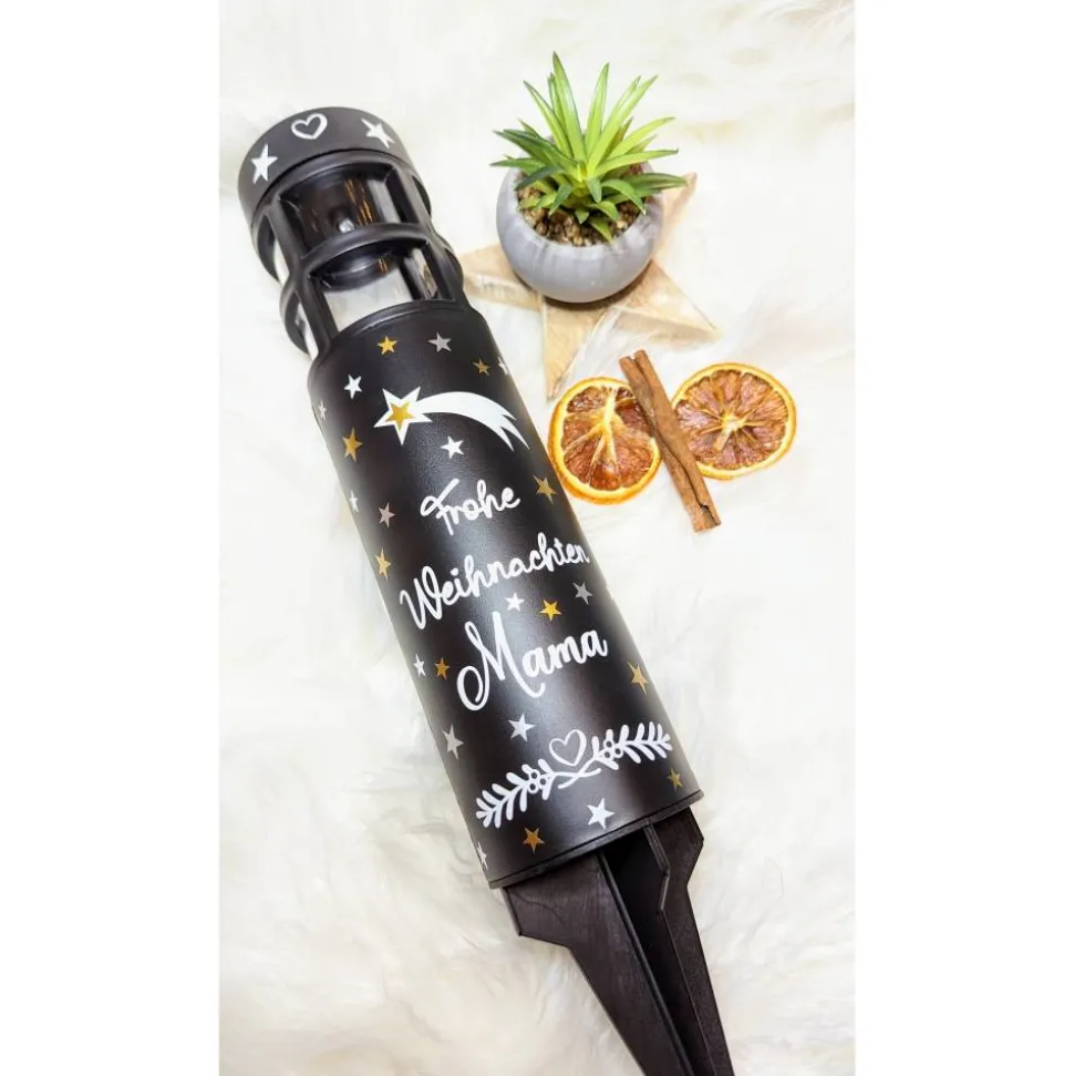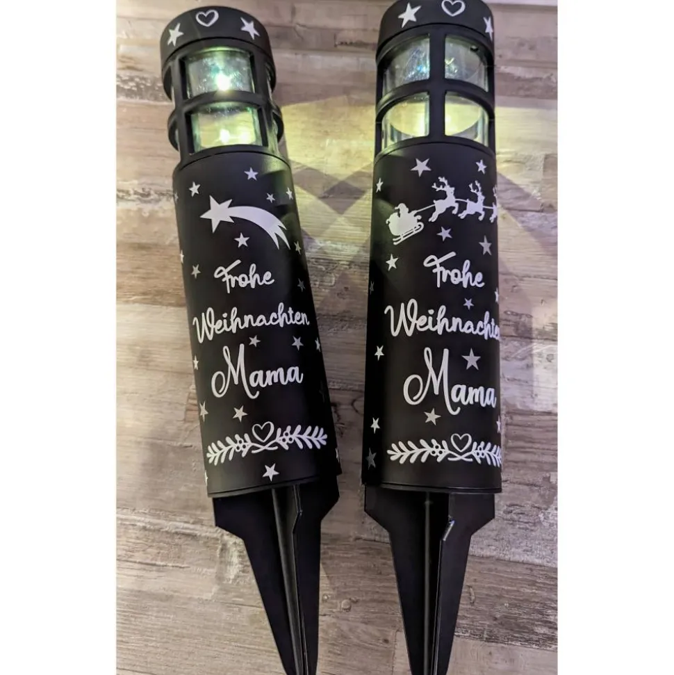 Die Solarleuchte wird personalisiert mit hochwertiger Vinylfolie, die extra für den Outdoor Bereich ist.