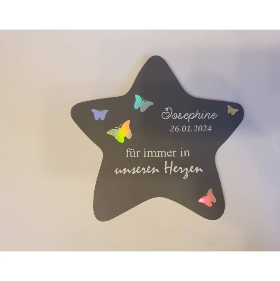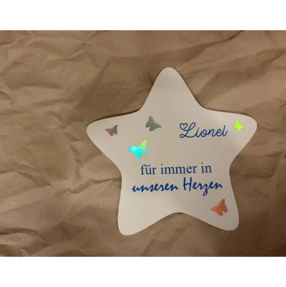 – Feder, Schmetterlinge, Sterne oder Herzen in Regenbogenfolie