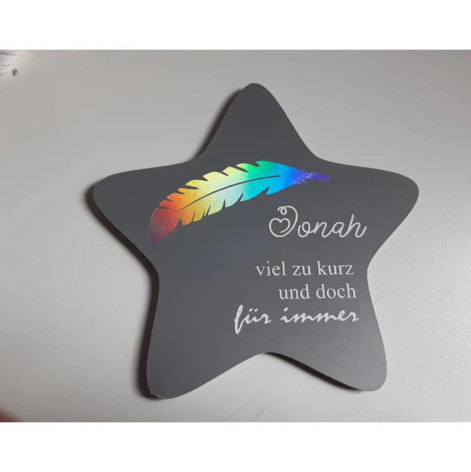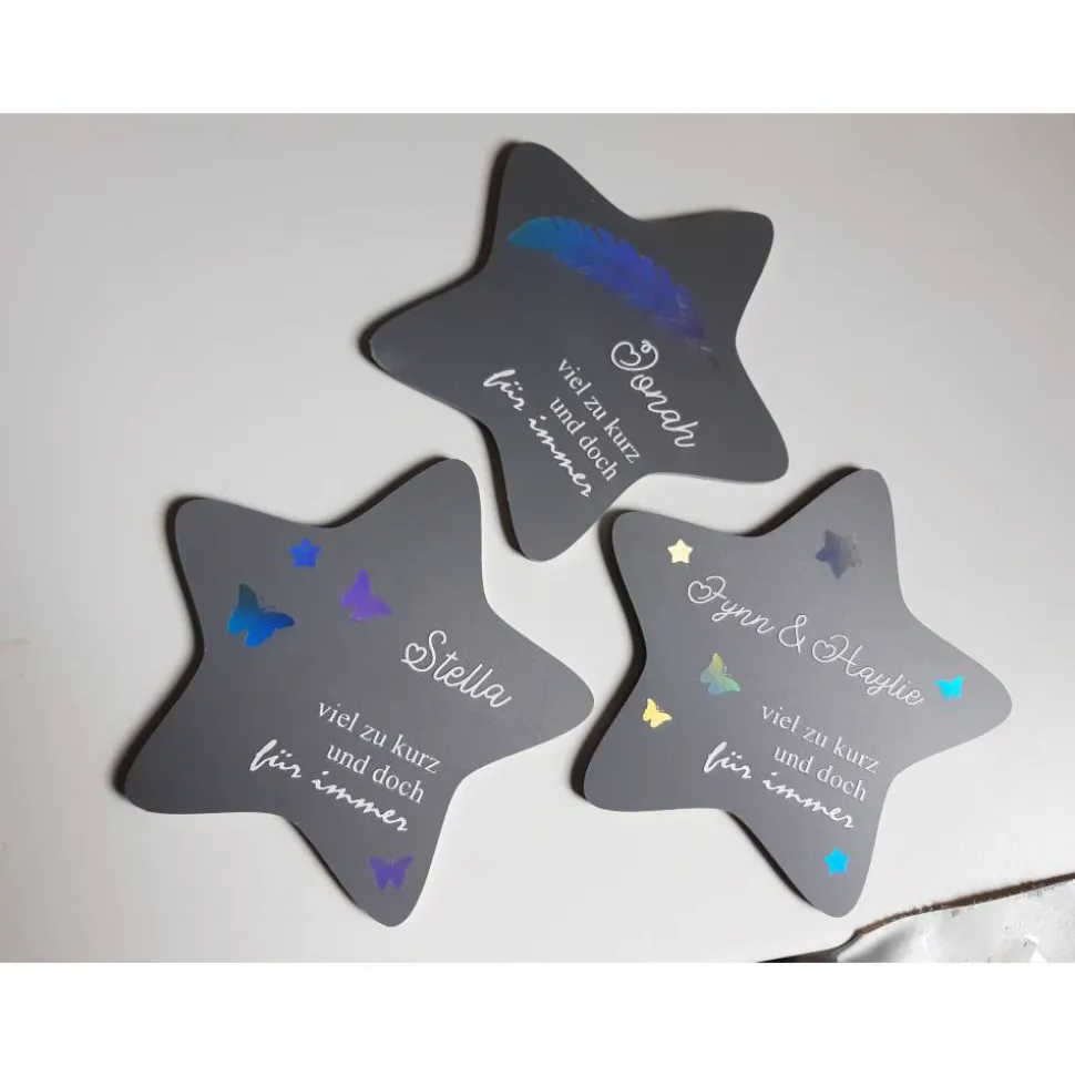– Feder, Schmetterlinge, Sterne oder Herzen in Regenbogenfolie