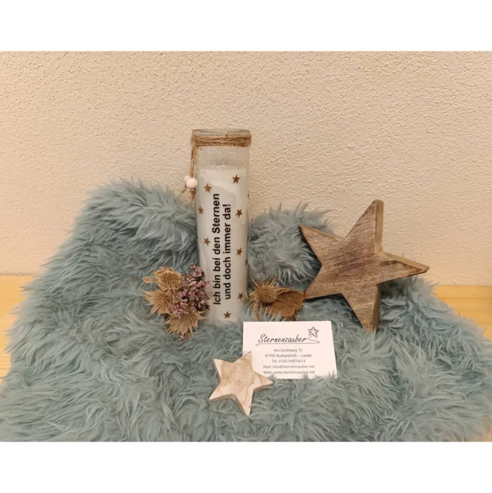 Schreibe die erste Bewertung für „Grabkerze aus Glas – Ich bin bei den Sternen und doch immer da“ Antworten abbrechen