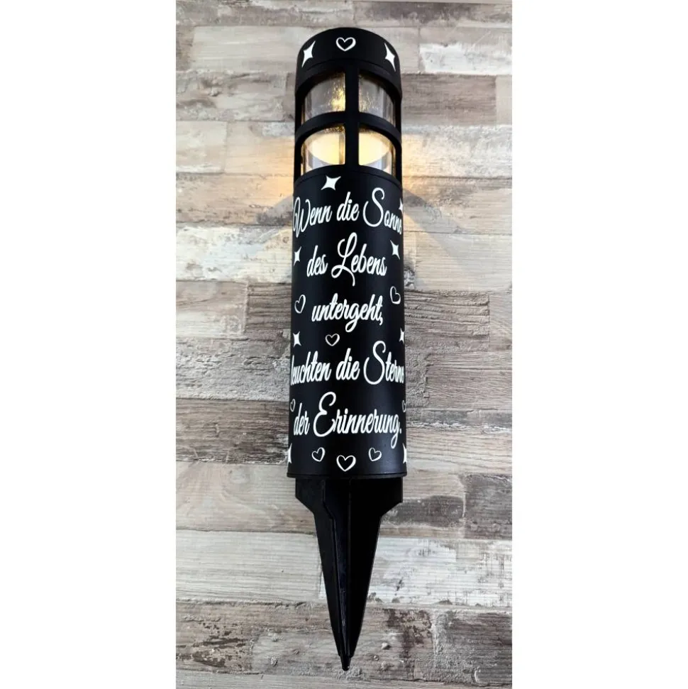 Die Solarleuchte wird personalisiert mit hochwertiger Vinylfolie, die extra für den Outdoor Bereich ist.