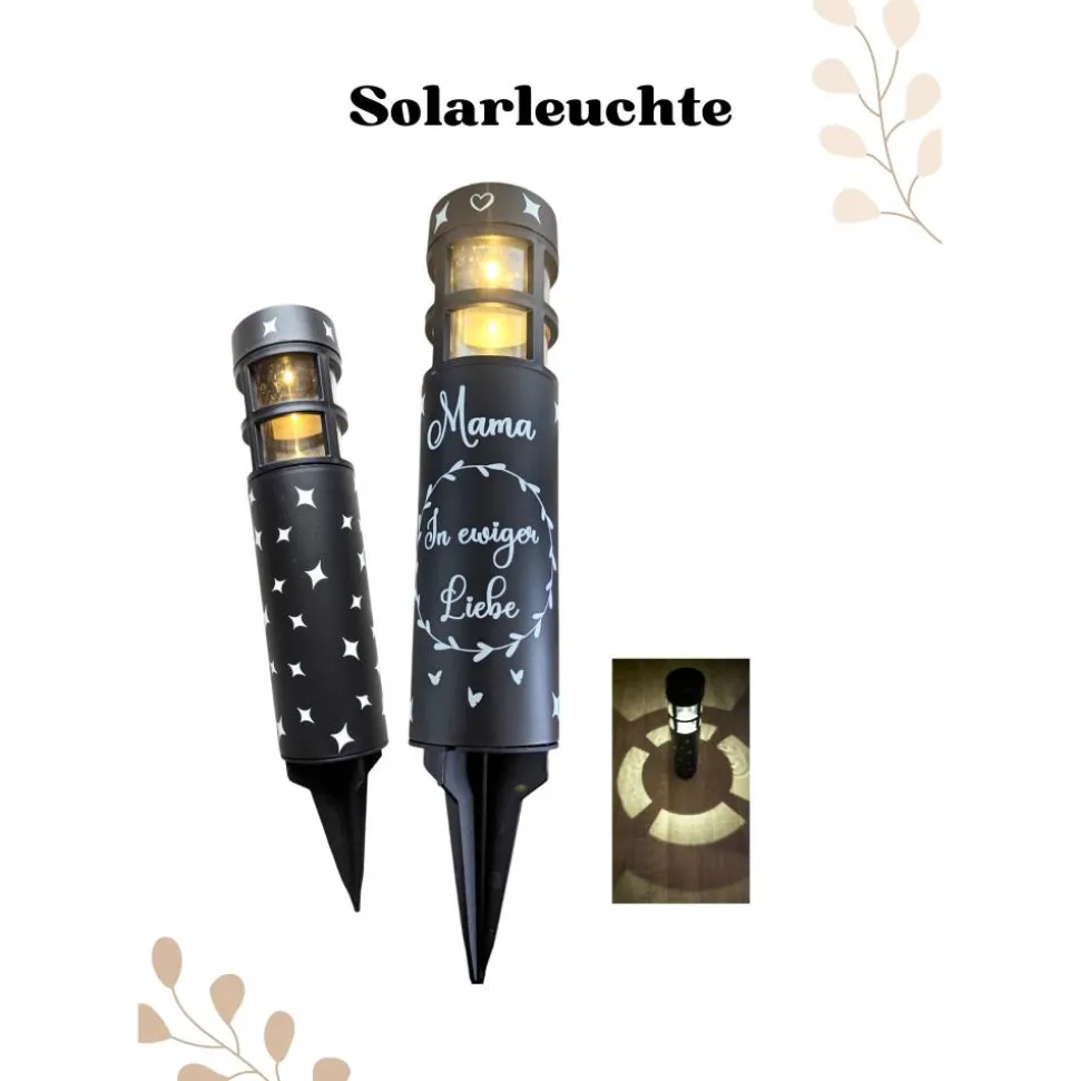 Die Solarleuchte wird personalisiert mit hochwertiger Vinylfolie, die extra für den Outdoor Bereich ist.