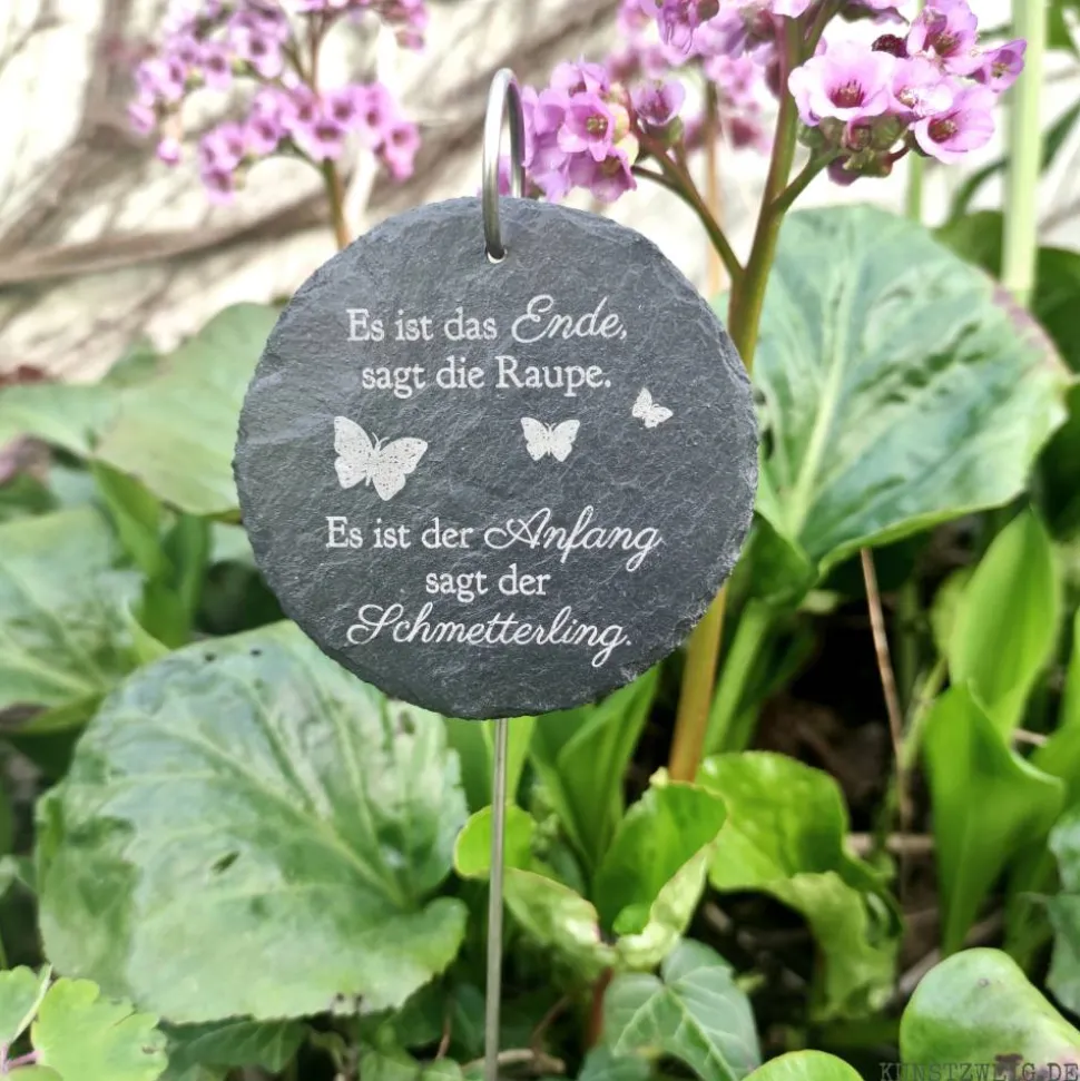 Die Schiefertafel mit wundervollem Trauerspruch kann mit Hilfe des Erdstabes auf das Grab gesteckt werden. Du kannst es auch verschenken, um Angehörigen deine Anteilnahme auf besondere Weise mitzuteilen.