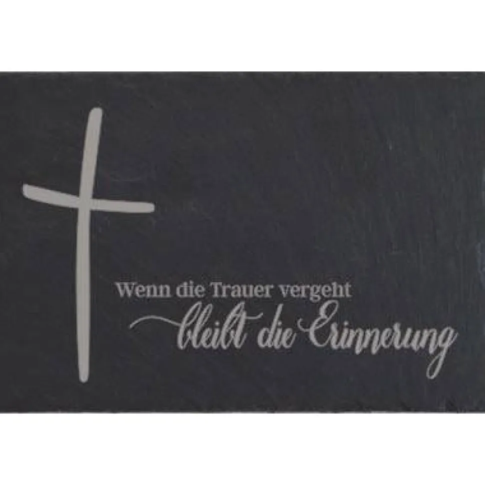 Sie möchten auf besondere Art und Weise an einen lieben Menschen erinnern, den Sie verloren haben? Mein Grabschild mit Gravur macht genau das für Sie möglich. Das Grabschild kann ergänzend zu einem Grabstein oder Kreuz aufgestellt werden. Es wird aus reinem Schiefer hergestellt, ist ausgesprochen robust und kann damit bedenkenlos auf Dauer im Freien eingesetzt werden.