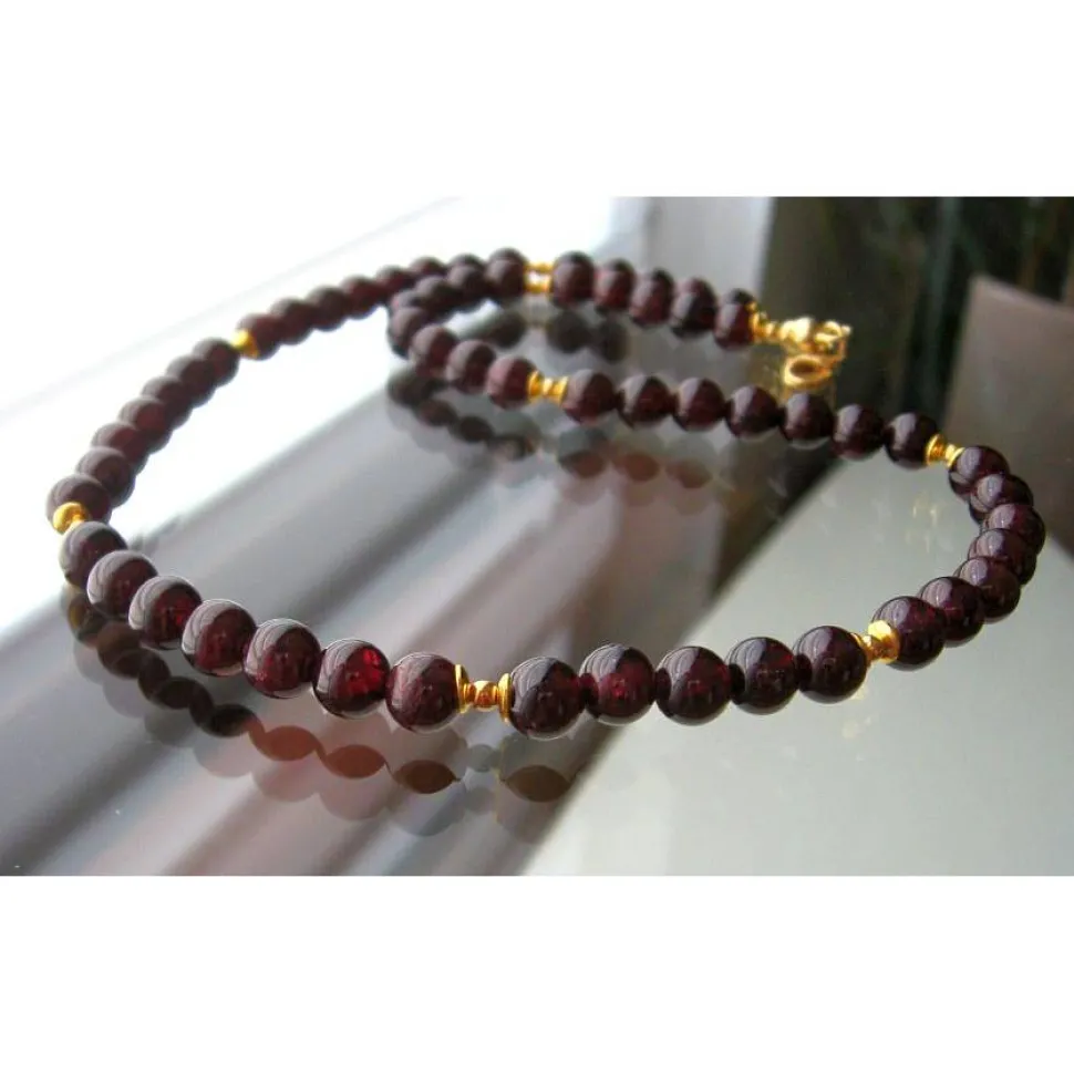 Tiefroter Granat mit Zwischenteilen aus Silber 925 vergoldet.