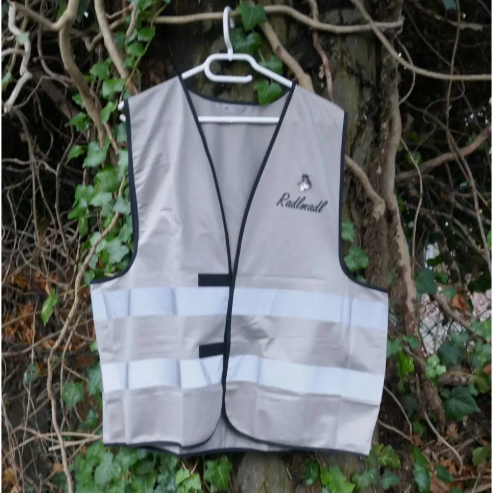 Hier sind sie – wertige bunte Signalwesten, toll bedruckt und zusätzlich noch aufgebrezelt.