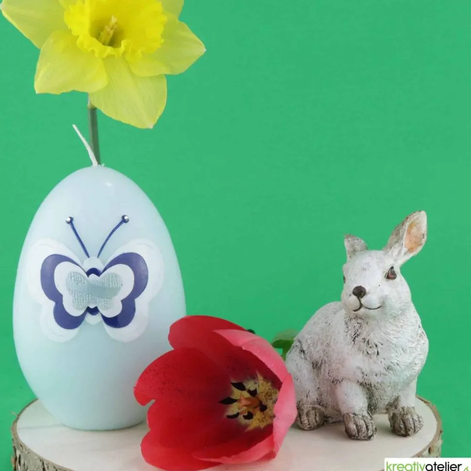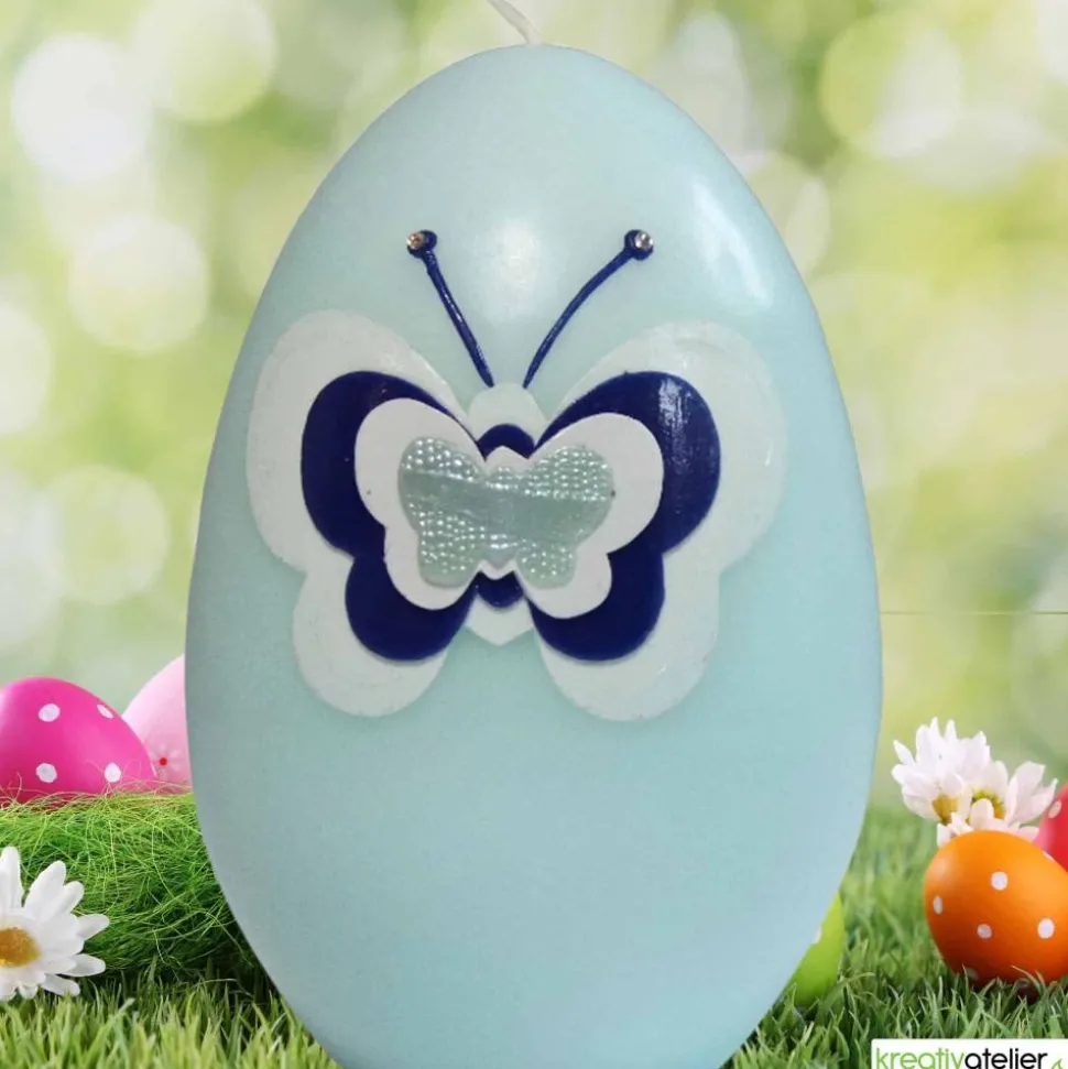Diese Ostereikerze eignet sich hervorragend als Tischdeko für Ihre Osterfeierlichkeiten oder als besonderes Ostergeschenk für Ihre Lieben. Sie ist ein Symbol für das neue Leben und die Freude, die uns das Osterfest schenkt. Die zarte hellblaue Farbe der Kerze verleiht ihr eine ruhige und friedliche Ausstrahlung und lässt den Schmetterling in blau-weißem Verzierwachs besonders schön zur Geltung kommen.