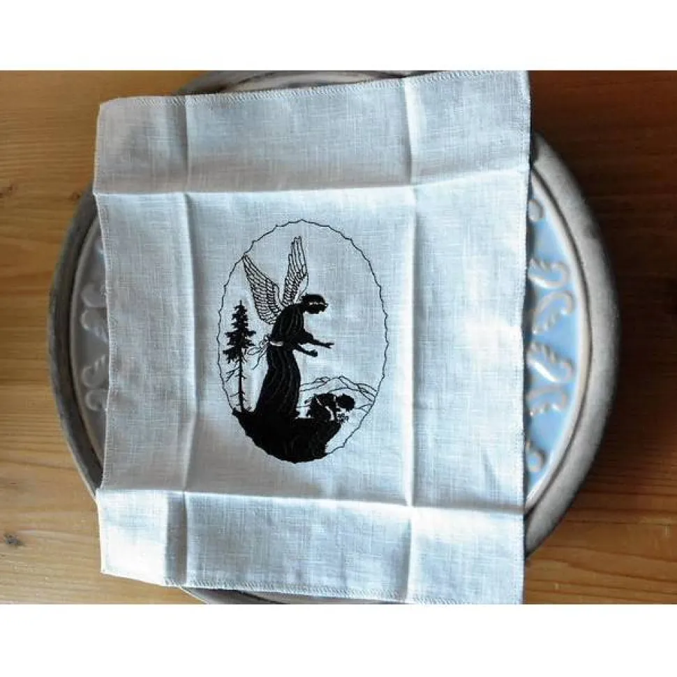 Der Aufnäher ist im Scherenschnitt auf 100% Leinen gestickt.