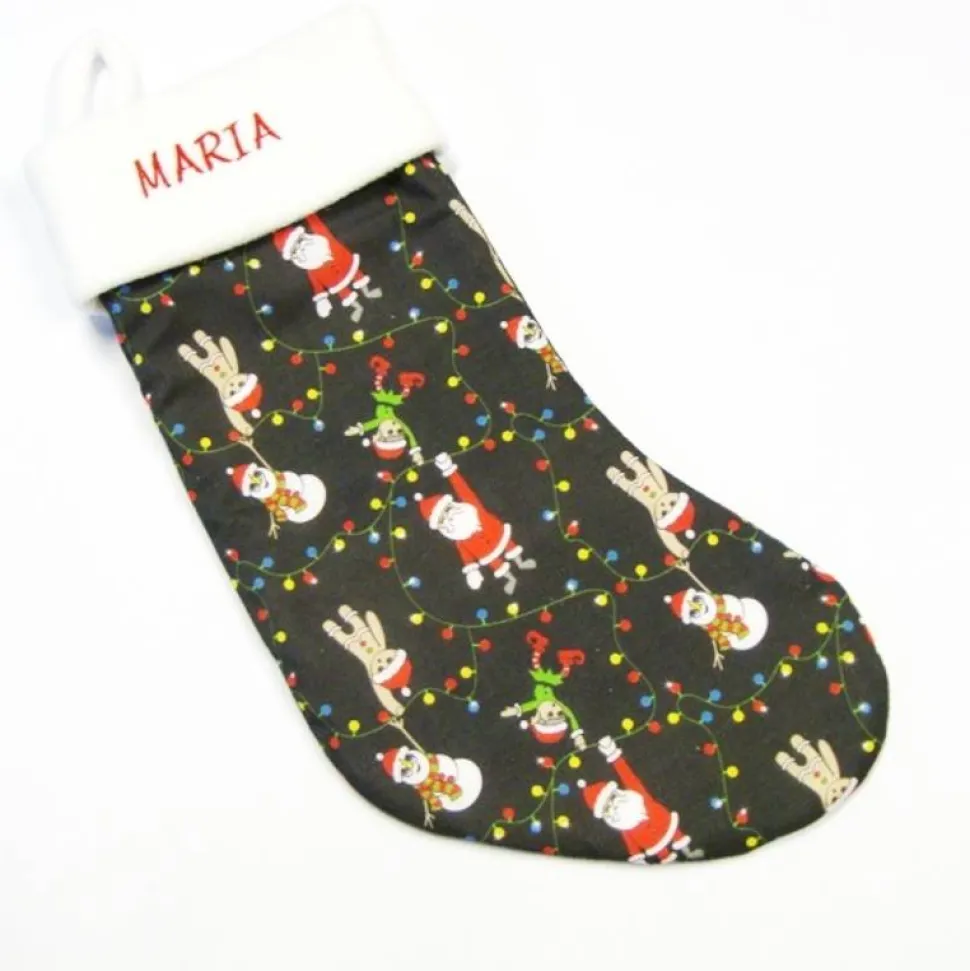 Großer Nikolausstiefel Nikolausstrumpf Lichterkette Schneemann Nikolaus und weißer Fleece Krempe Weihnachtsstrumpf handgefertigt mit oder ohne Name kaufen für Kinder und Erwachsene.