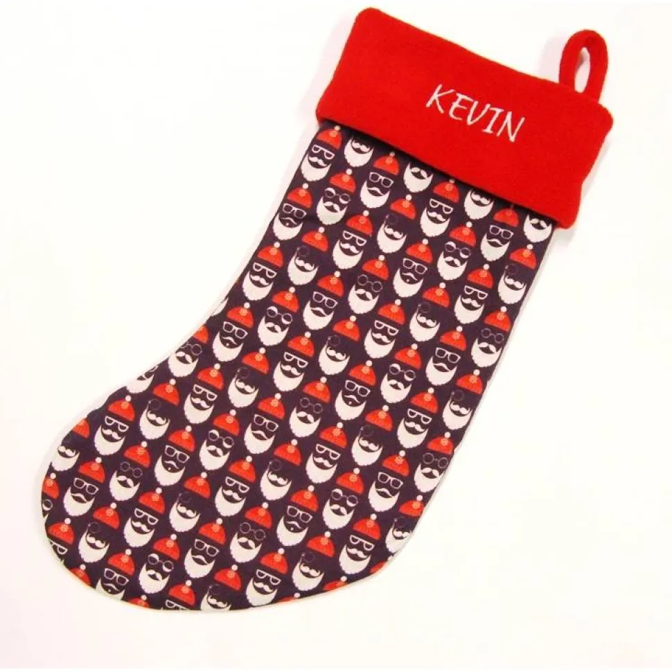 Großer Nikolausstiefel Nikolausstrumpf mit Nikolausgesicht und roter Fleece Krempe Weihnachtsstrumpf handgefertigt mit oder ohne Name kaufen für Kinder und Erwachsene.
