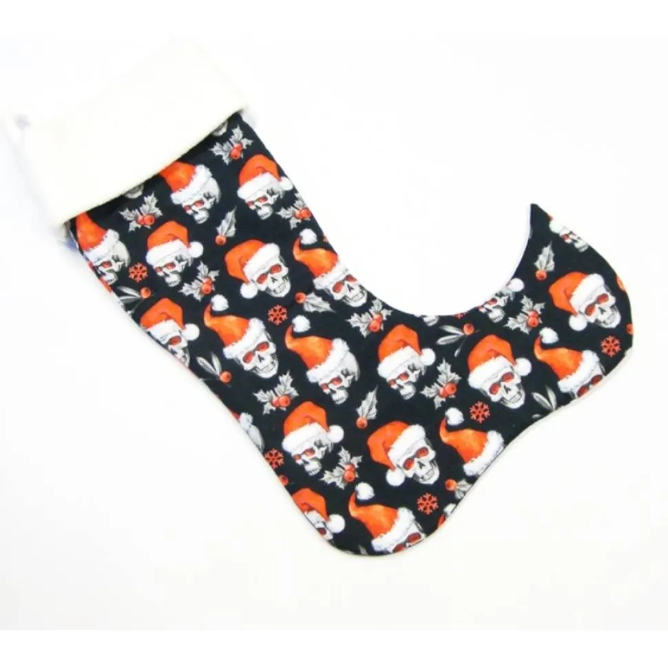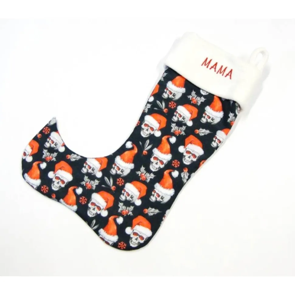 Großer Nikolausstiefel Nikolausstrumpf mit Totenkopf, Skull, Nikolausmütze und weier Fleece Krempe Weihnachtsstrumpf handgefertigt mit oder ohne Name kaufen für Kinder und Erwachsene