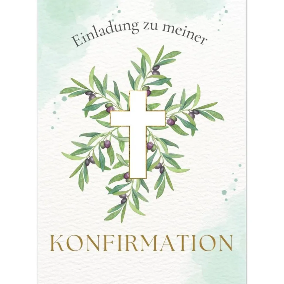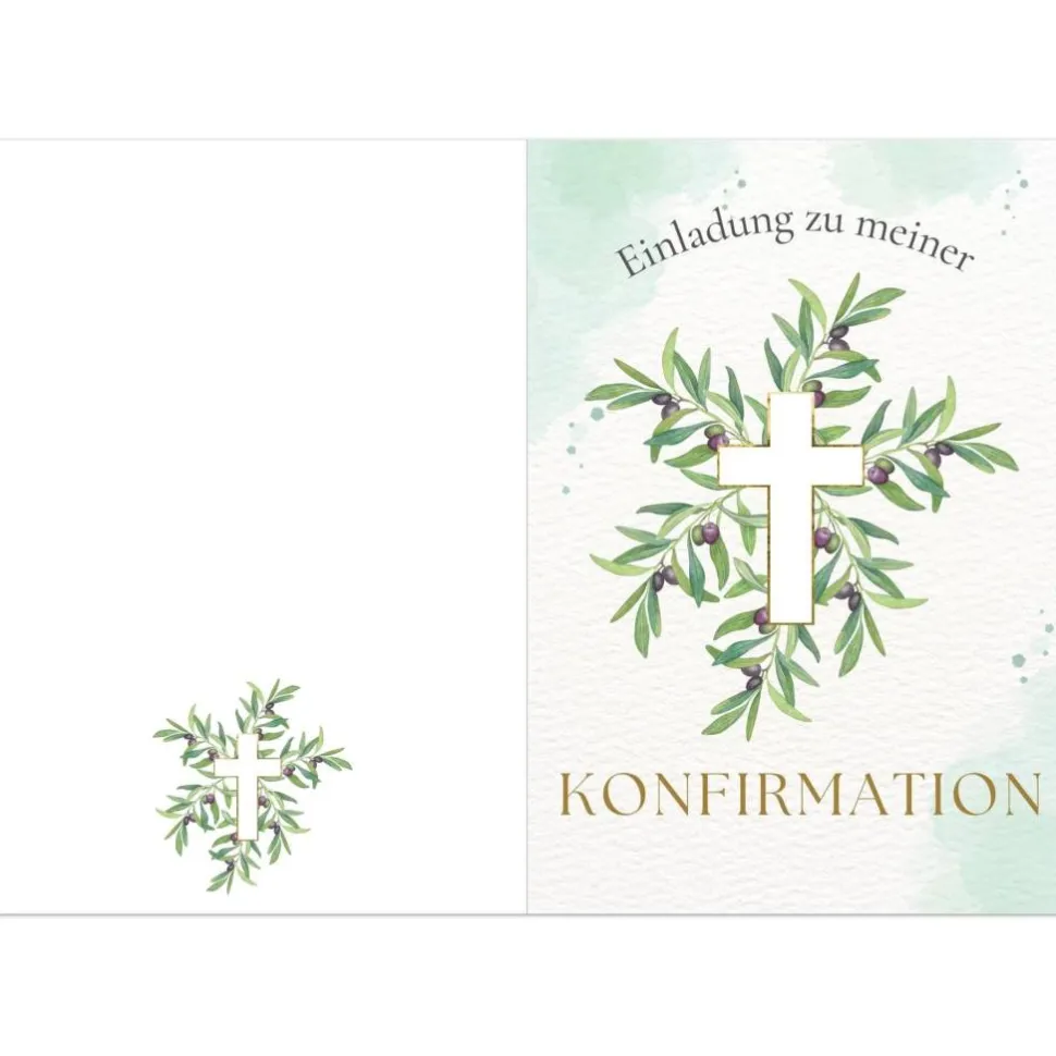Grünes Konfirmationseinladungskarten-Set 10er-Pack, Konfirmationskarte mit Olivenzweigen, Einladung Konfirmation