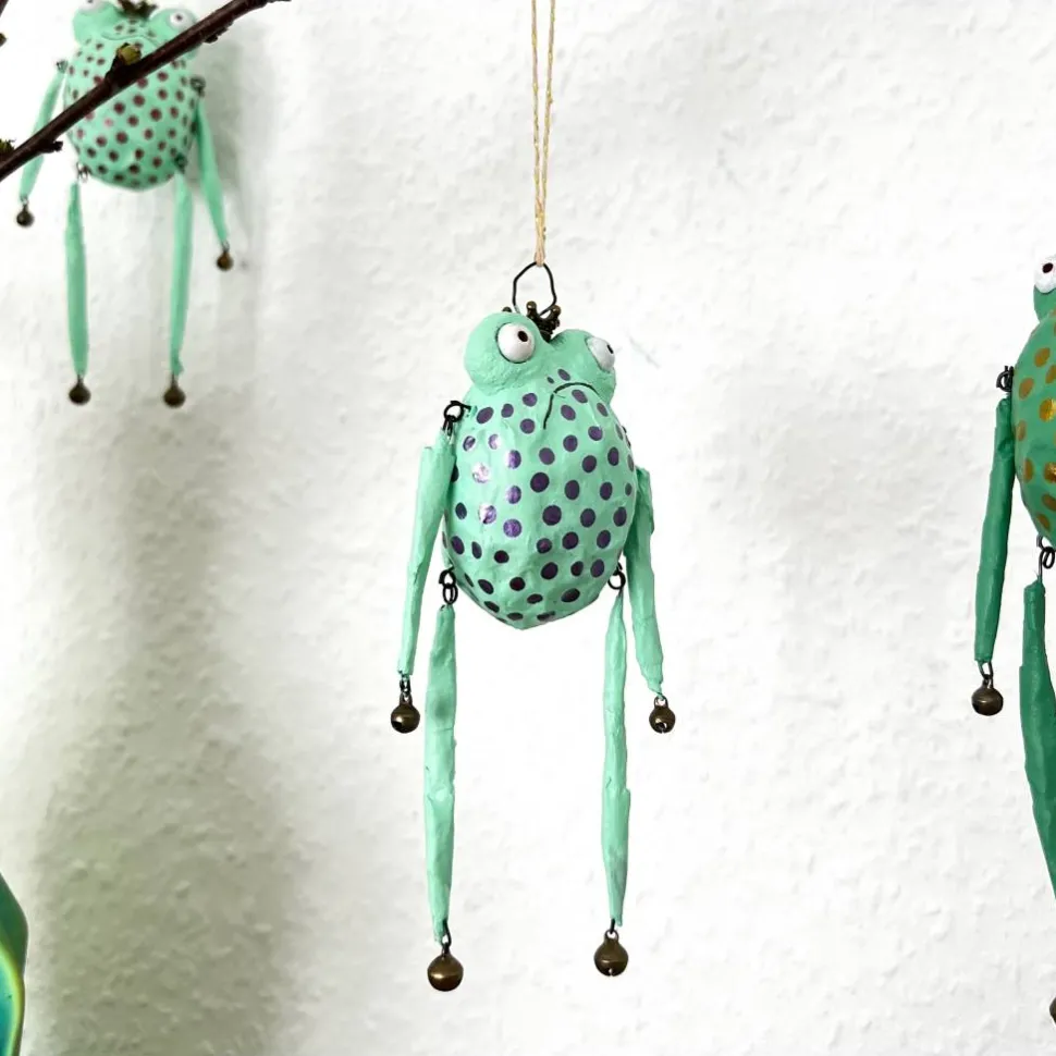 Dieses entzückende Froschglöckchen habe ich aus Papier und Draht hergestellt, bemalt und mit Glöckchen und Bronzekrone dekoriert. Es macht sich hervorragend im Osterstrauß, am Türkranz oder als kleines Geschenk.