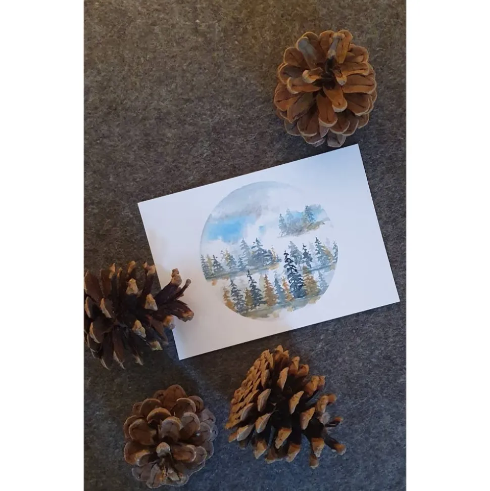 handgemaltes Wintermotiv als gedruckte Aquarellgrusskarte. Postkartenformat A6, hochglanz, mit Adressfeld